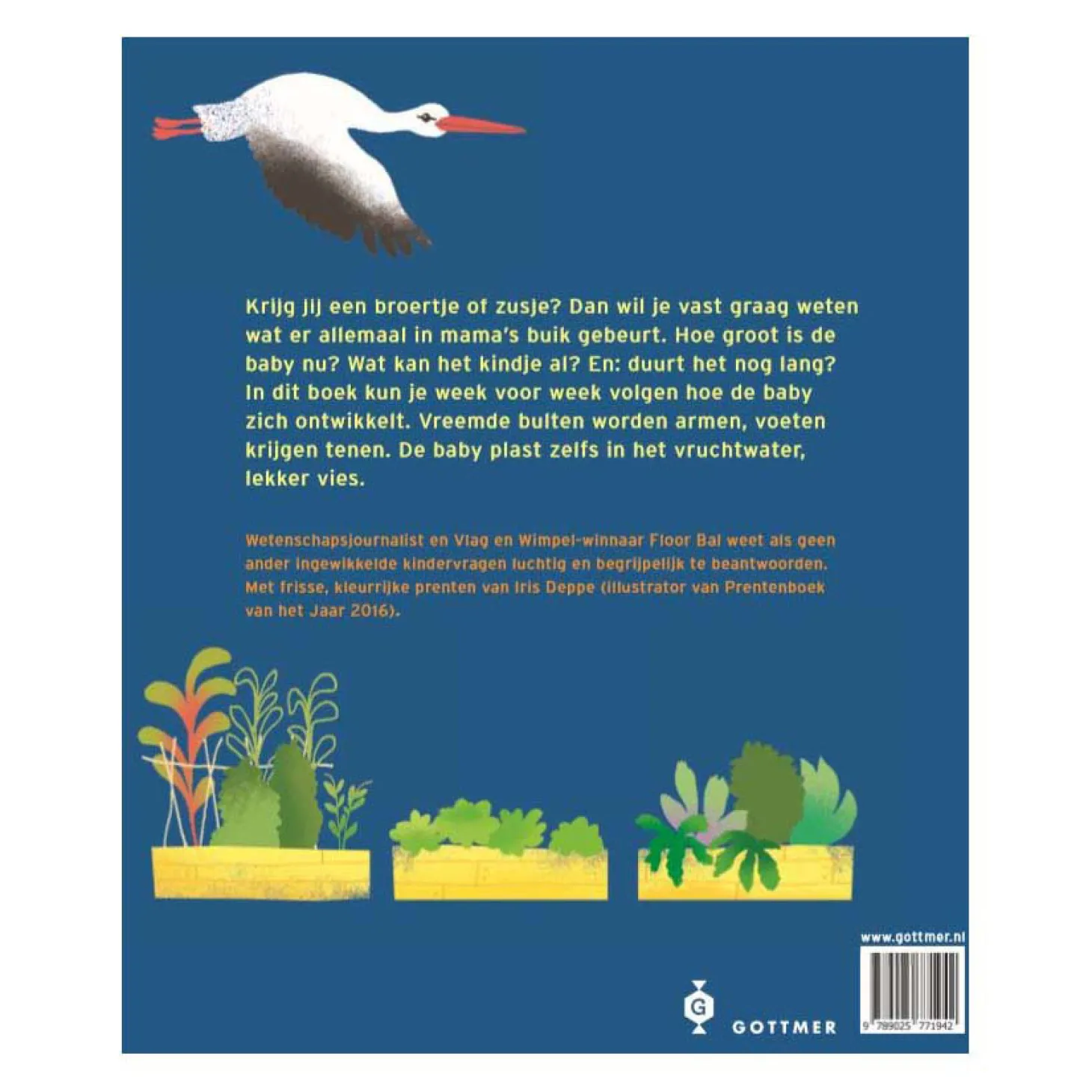 Kleuters die een broertje of zusje krijgen zijn vaak hartstikke benieuwd naar wat er allemaal in de buik van hun moeder gebeurt. Wetenschapsjournalist Floor Bal, die voor haar boek ‘Het hele soepzootje’ een Vlag en Wimpel van de Griffeljury kreeg, vertelt week voor week hoe de baby in mama’s buik zich ontwikkelt, met veel gevoel voor de belevingswereld van jonge kinderen. Ze krijgen antwoord op vragen als: hoe groot is de baby nu? Wat kan het kindje allemaal? En natuurlijk komt ook de eeuwige hamvraag voorbij: duurt het nog lang?