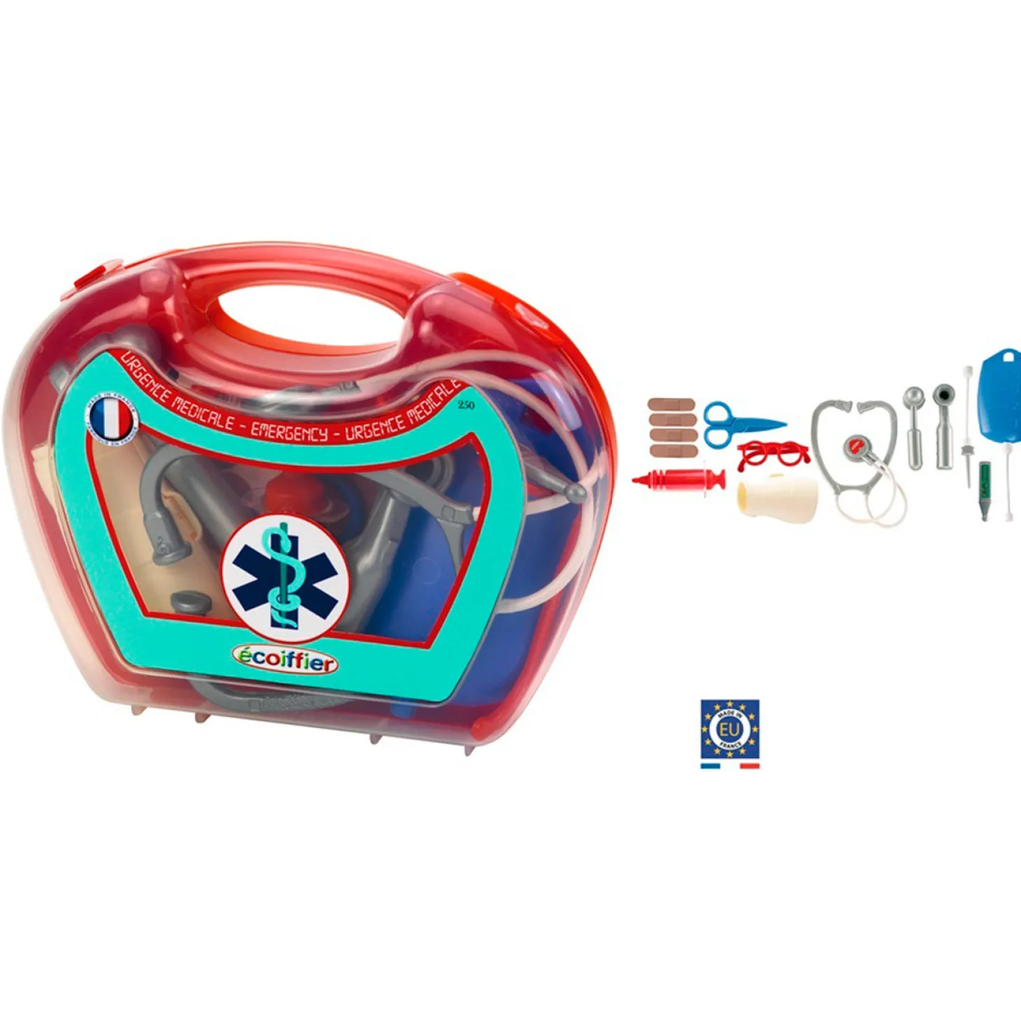 Behandel je patiƫnten met deze 14-delige dokterskoffer van Ecoiffier. In de dokterskoffer zitten pleisters, een schaar, een bril, verband, een stethoscoop en nog veel meer. Alles wat je eventueel nodig hebt, heb je met deze koffer snel bij de hand!