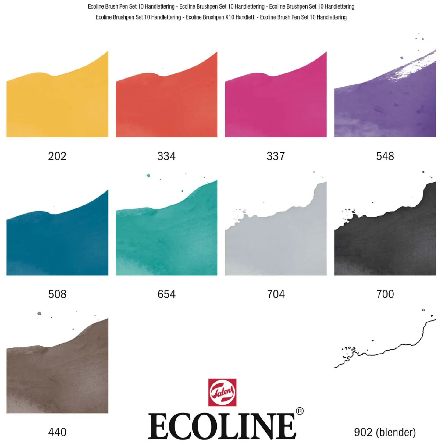 Deze set bevat 10 Ecoline Brush Pens in verschillende levendige tinten. De Brush Pen kenmerkt zich door de flexibele punt en het uitgebreide assortiment schitterende kleuren dankzij de pure formule op kleurstofbasis. De transparante kleuren bieden de beste resultaten bij gebruik op wit of zeer lichtgekleurd papier. Indien gewenst kun je de kleurintensiteit gemakkelijk verminderen door ze te verdunnen met water of met de Brush Pen blender. Deze pennen zijn perfect voor handlettering, aquareltekeningen, snelle schetsen en finishing touches.