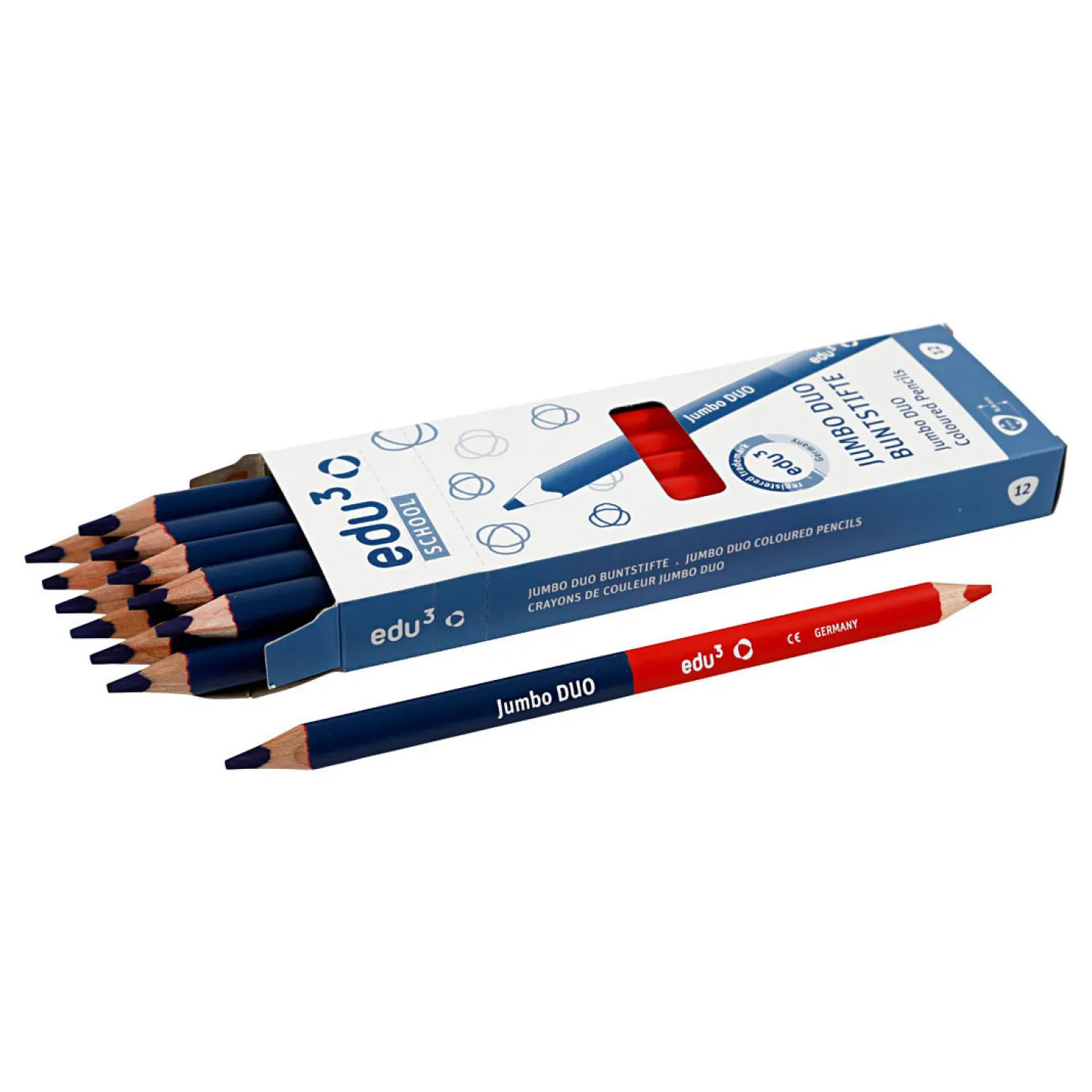 Dikke, driehoekige startpotloden. Rood aan de ene kant en blauw aan de andere kant. Voor gebruik bij het trainen van klinkers en medeklinkers