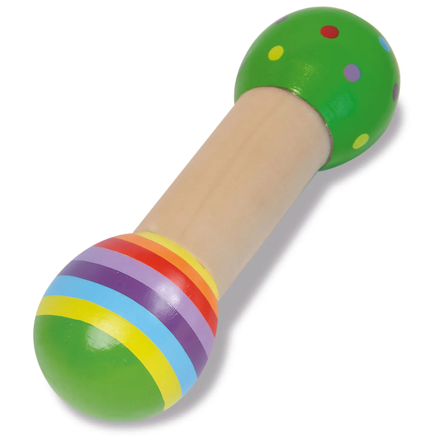Deze houten muziekset van Eichhorn maakt van jou een echte muzikant! In de set zitten 2 verschillende rammelaars, een ronde met verschillende belletjes, en een meer in de vorm van een stok met twee bollen aan de uiteindes met geluidjes erin als je ermee schudt. Geschikt voor kinderen vanaf 1 jaar oud.