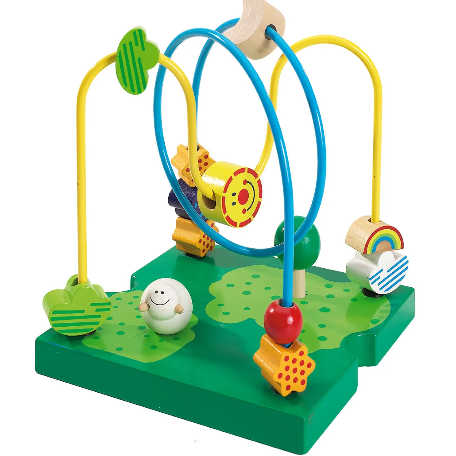 Eichhorn spellencentrum met een telraam, vormenbox, sorteerbord en spiralen met verschillende houten figuurtjes. Geschikt voor kinderen vanaf 18 maanden.