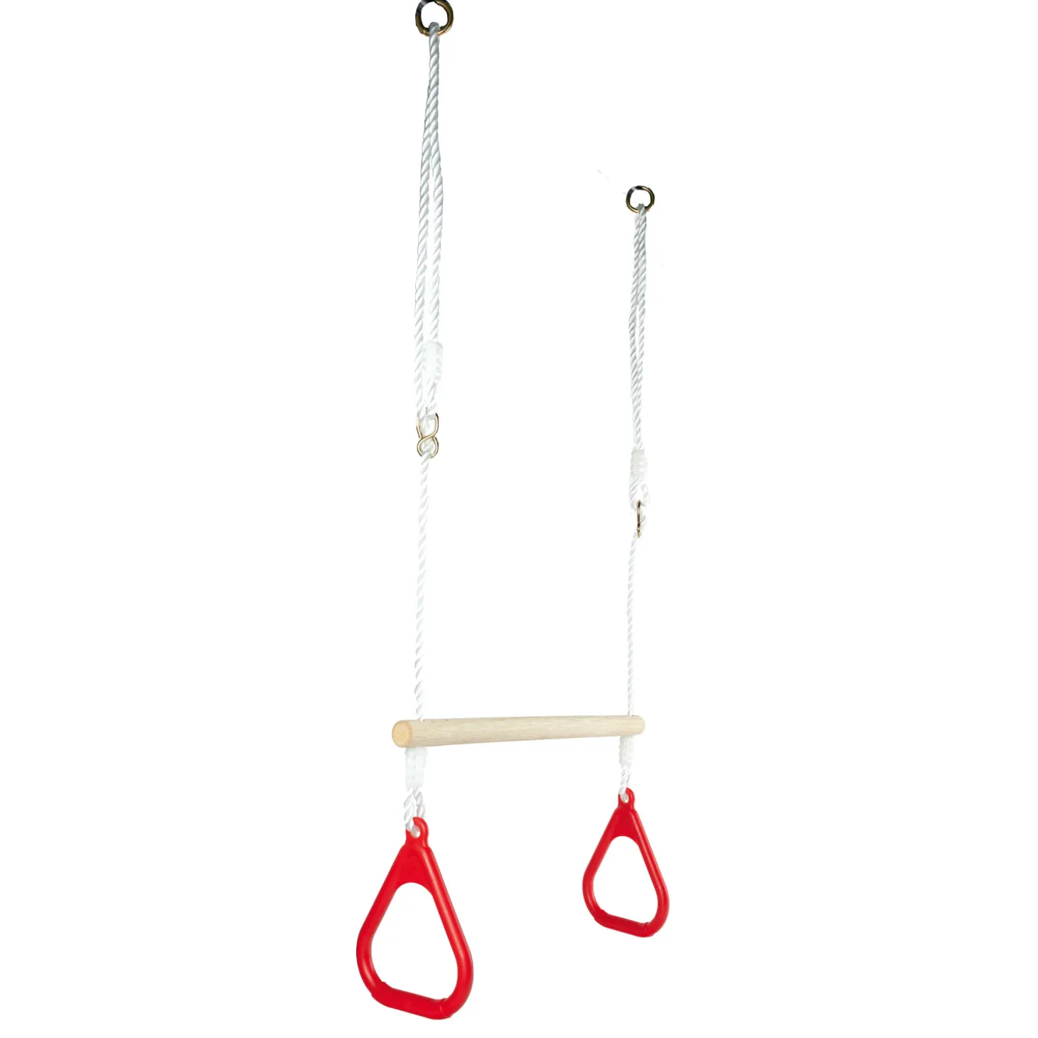 De houten trapeze is in hoogte verstelbaar van 110 cm tot 160 cm en heeft een maximale belastbaarheid van 60 kilogram. Geschikt voor kinderen vanaf 3 jaar oud.