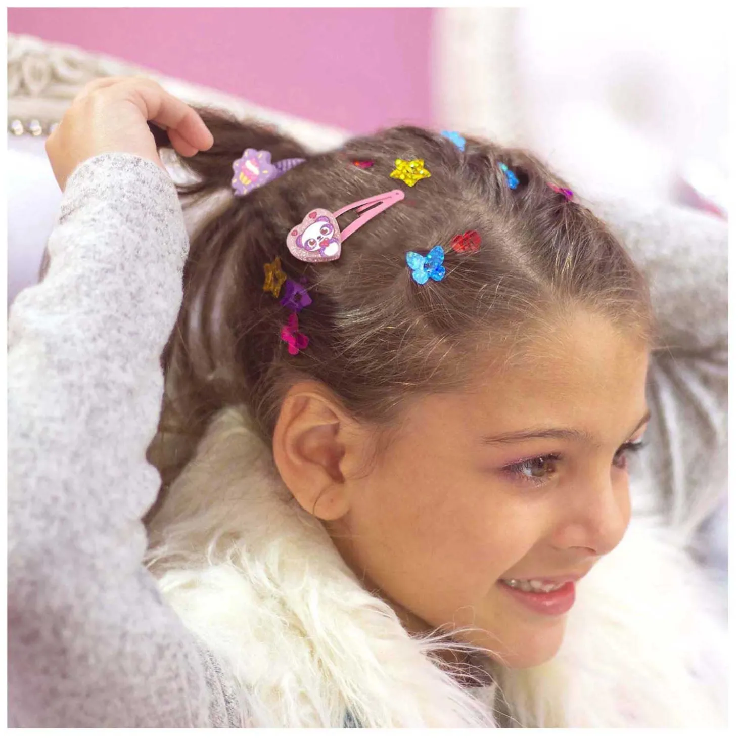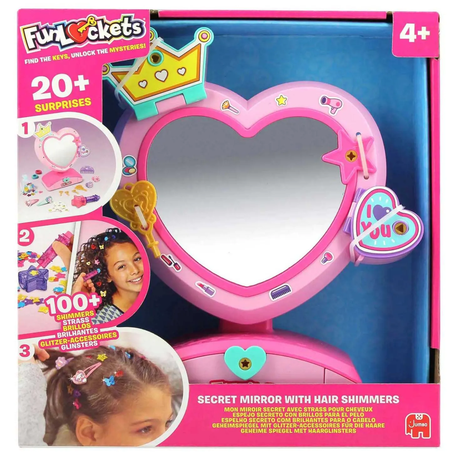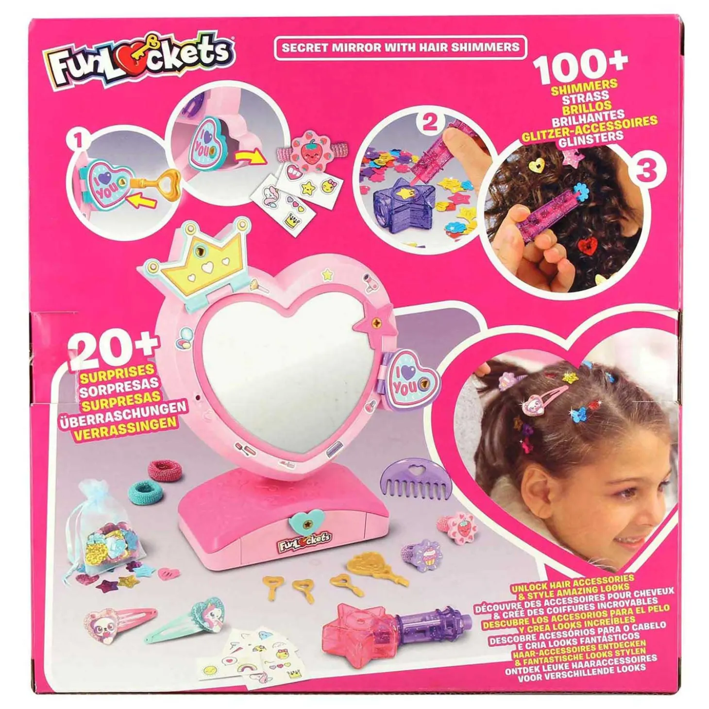 •4 sleutels, 2 scrunchies, 2 haarclips, 6 stickervellen, 1 kam, 1 haartool en +100 haarglinsters