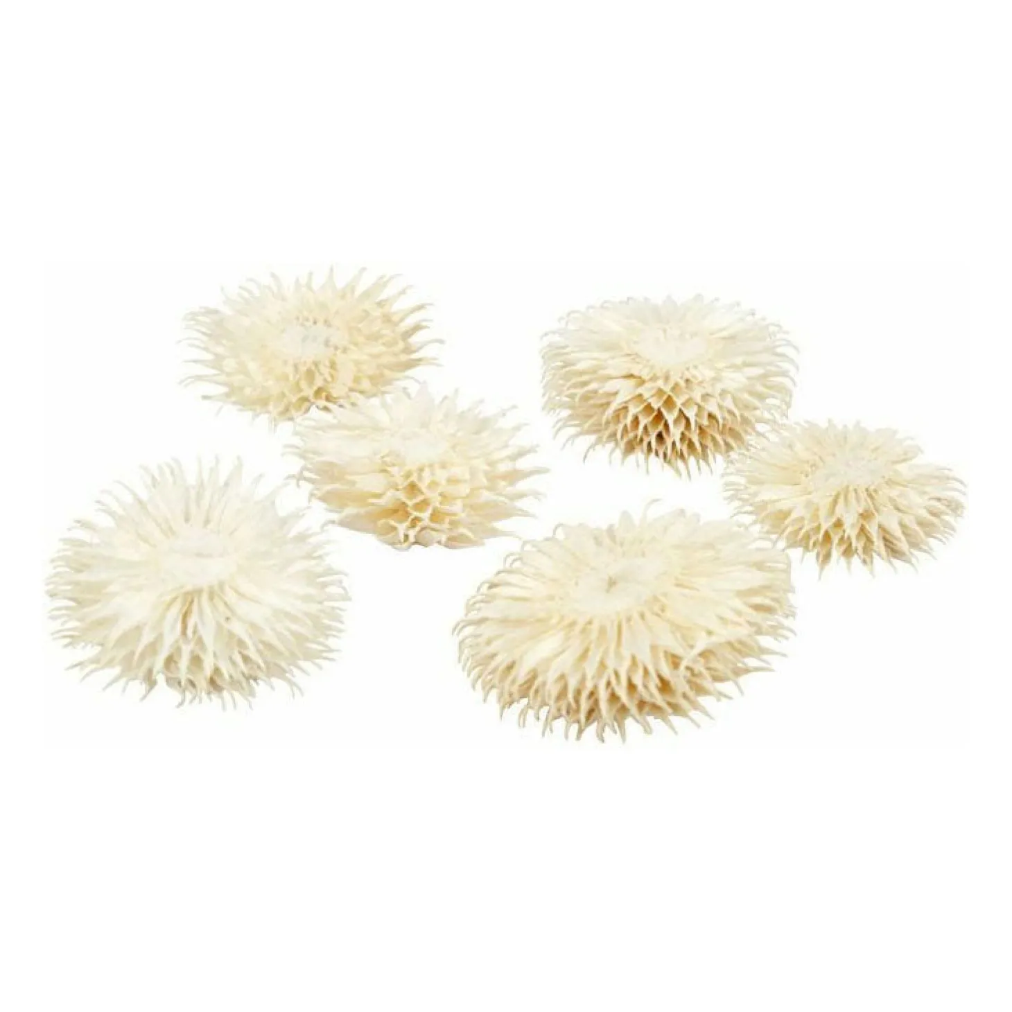 Creƫer prachtige decoraties en creatieve projecten met deze gedroogde, gebleekte bloemenkopjes. De bloemenkopjes zijn gesneden uit de distelachtige kaardeplant, wiens Latijnse naam Dipsacus is. Voeg een natuurlijke en vrouwelijke uitdrukking toe aan uw project.De bloemenkoppen kunnen direct worden vastgelijmd met bijvoorbeeld een lijmpistool. Ook te verlijmen op bloemenplectra of staven. Hierdoor krijgen ze een steel en kun je ze in gedroogde boeketten schikken.