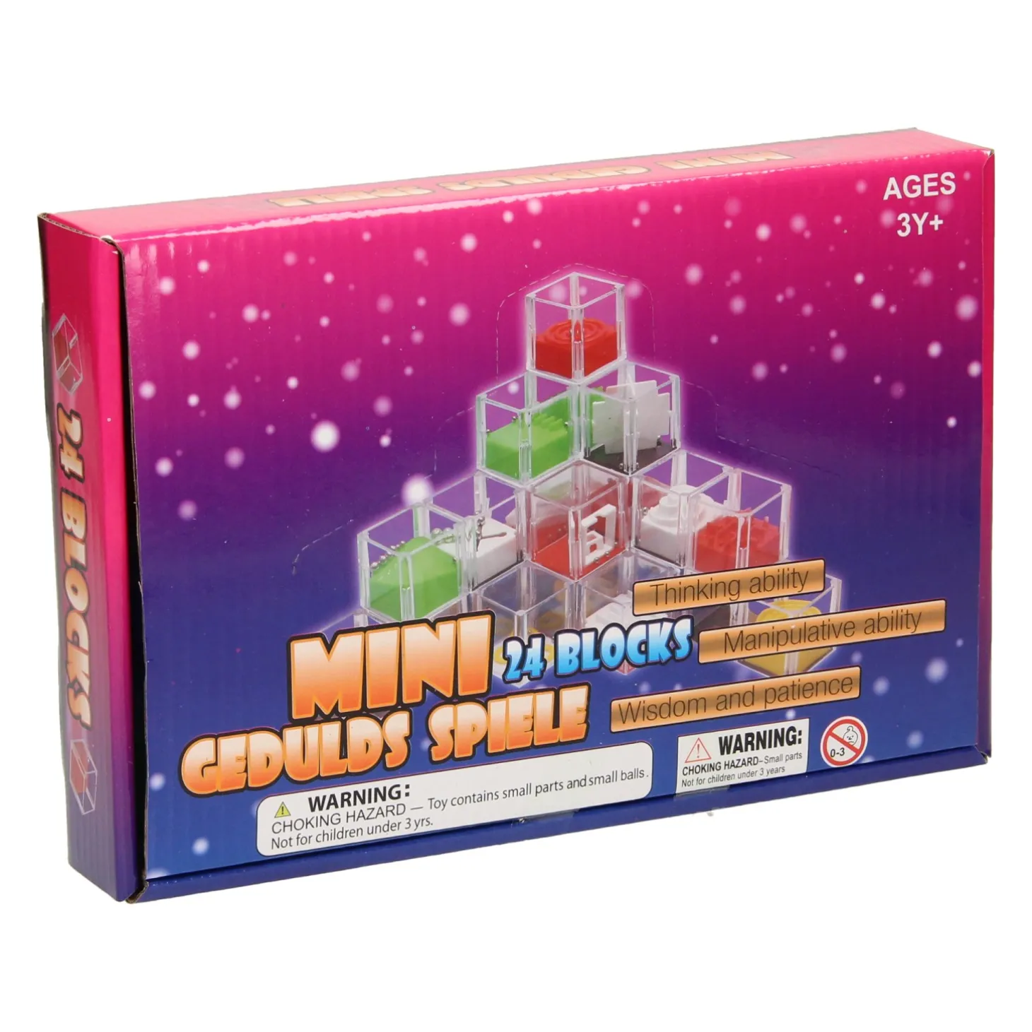 Het geduldspel bevat 24 kubussen. De kubussen hebben verschillende, ingewikkelde puzzel die bijdragen aan het denkvermogen en het vermogen om nauwkeurig te werken. De geduldspellen zijn geschikt voor kinderen vanaf 3 jaar. Door de kleine onderdelen is het niet geschikt voor kinderen jonger dan 3. Â