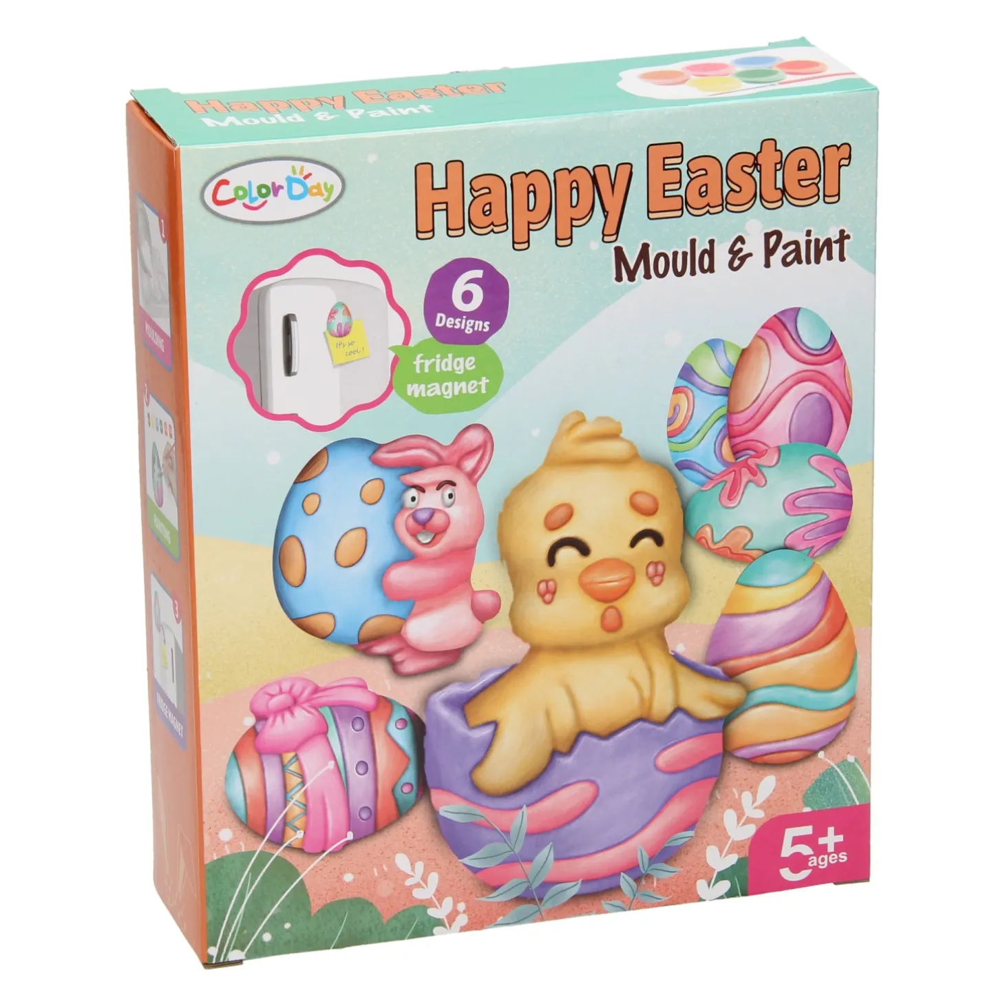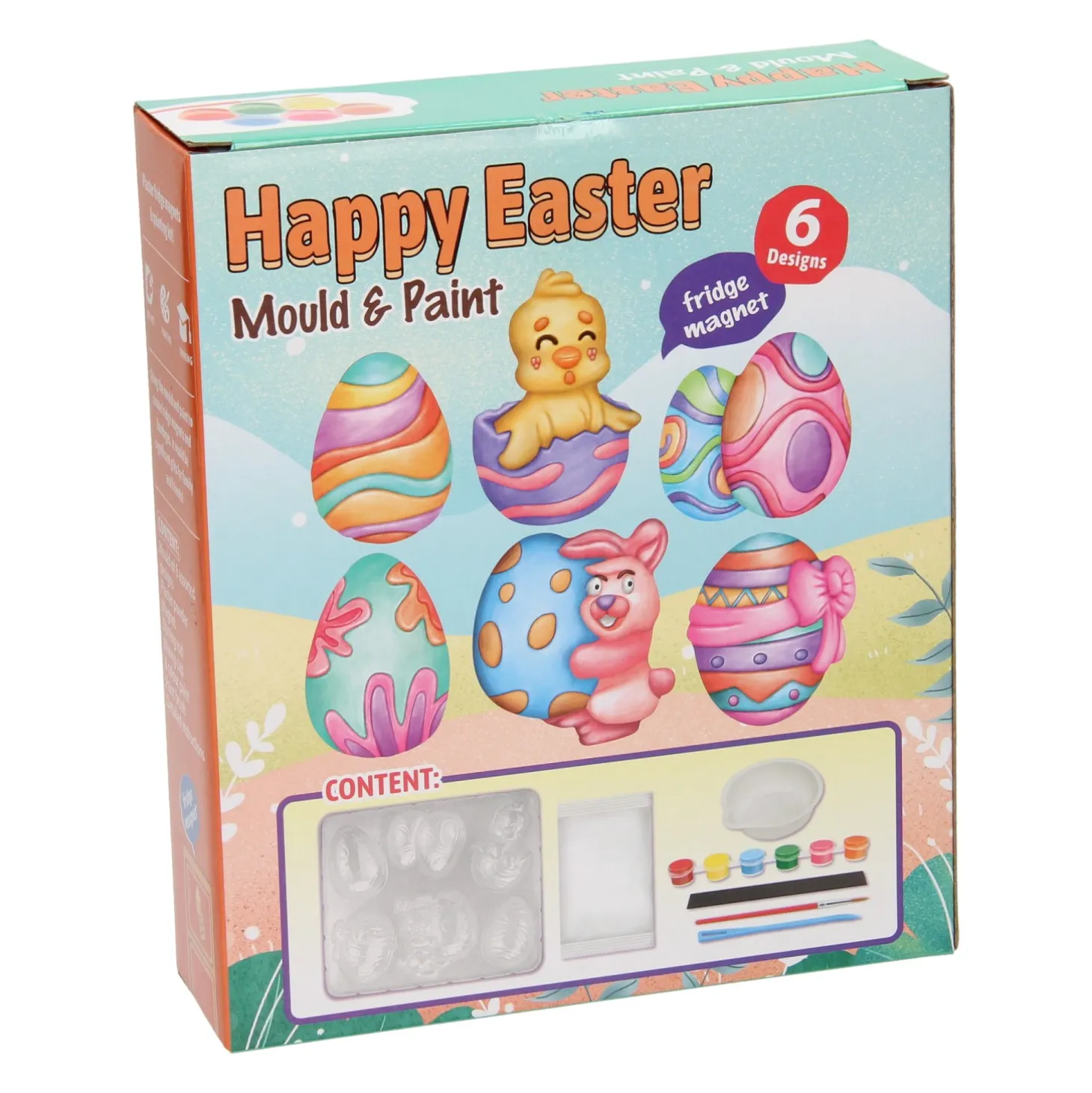 De set bevat 6 designs, 6 kleuren verf, een penseel en alle gips benodigdheden. Geschikt voor kinderen vanaf 5 jaar.
