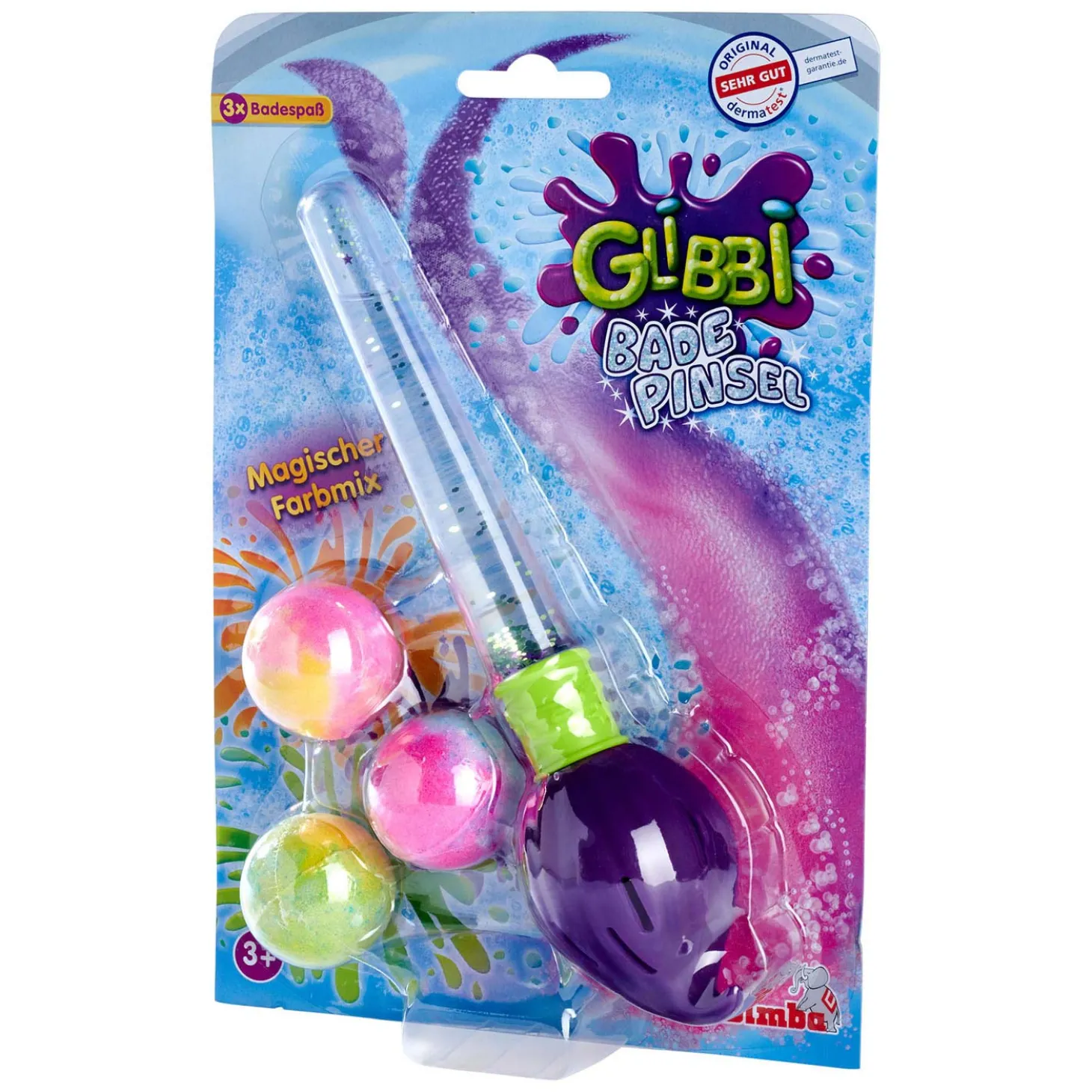Alle standaard Glibbi-badbommen met een doorsnede van 4 centimeter passen in de kwast, waardoor de kwast vaker te hergebruiken is. Niet geschikt voor kinderen onder de 3 jaar. Spoel het bad goed schoon na gebruik om uitglijden te voorkomen.