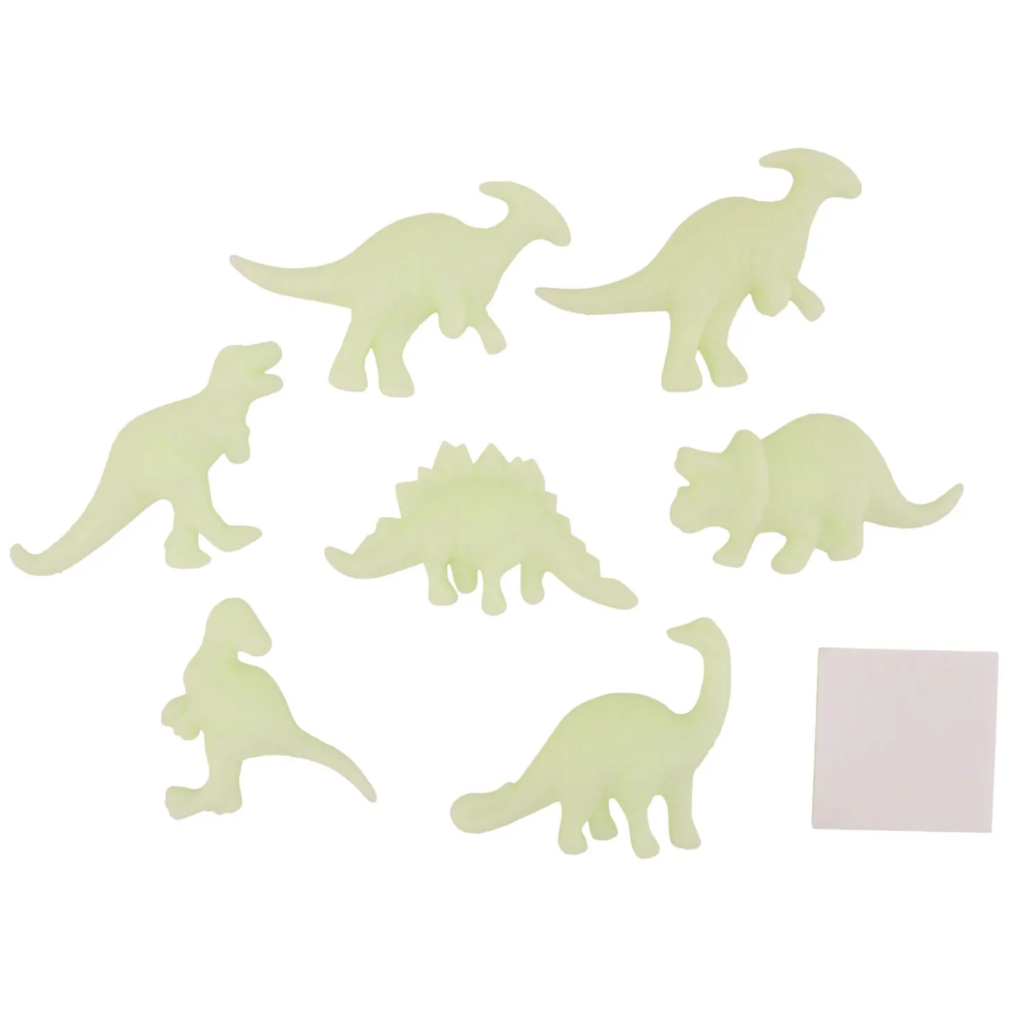 In de verpakking zitten 7 dinosaurussen en materiaal om ze gemakkelijk vast te maken.