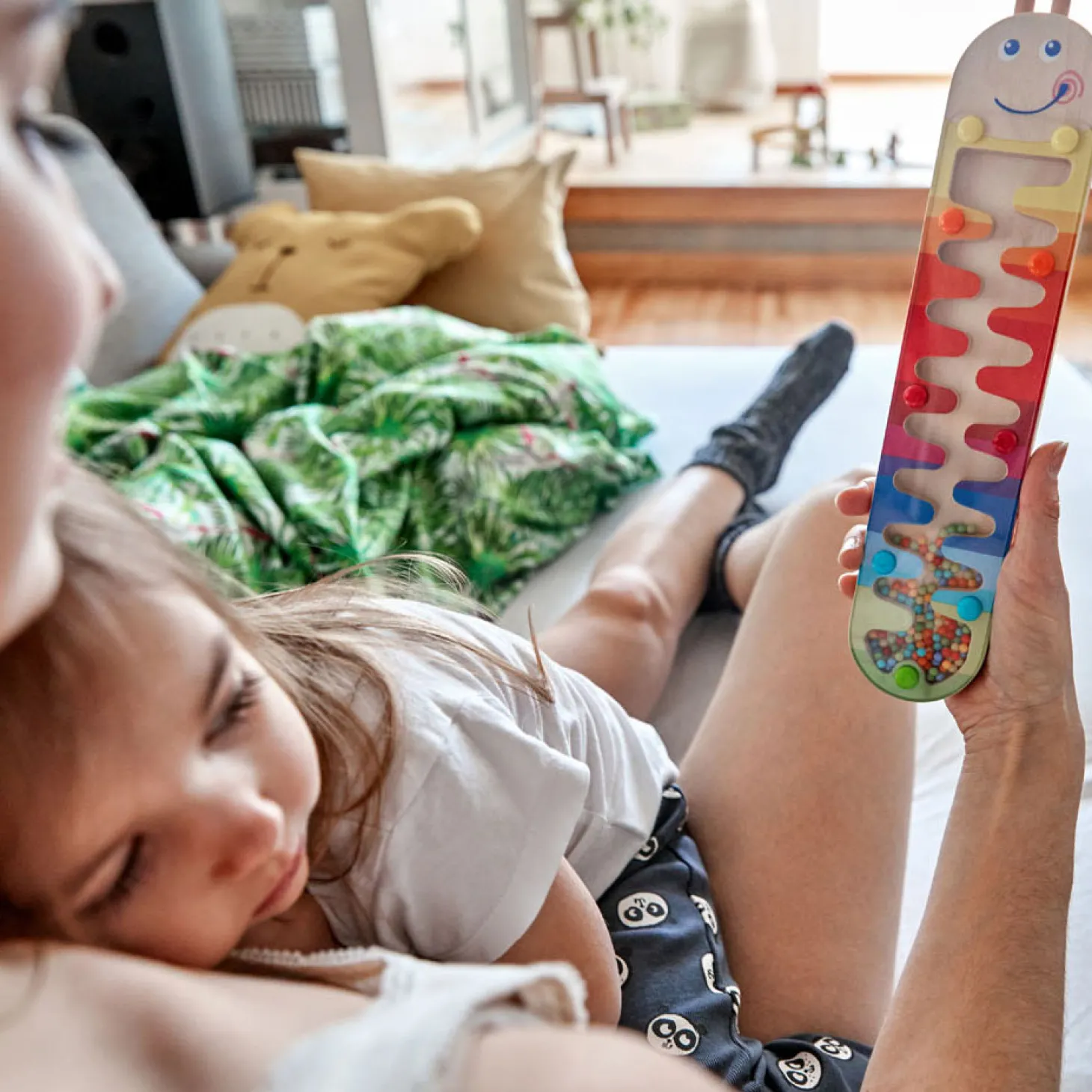 Veel kijk- en luisterplezier met de Haba Regenmaker Worm! Een prachtig gezicht hoe de gekleurde balletjes zich zigzaggend een weg banen. Heerlijk rustgevend is het geluid dat de vallende balletjes daarbij maken! Gaat deze Haba Regenmaker jouw kleintje ook rustig maken of gebruikt hij het speeltje als rammelaar?