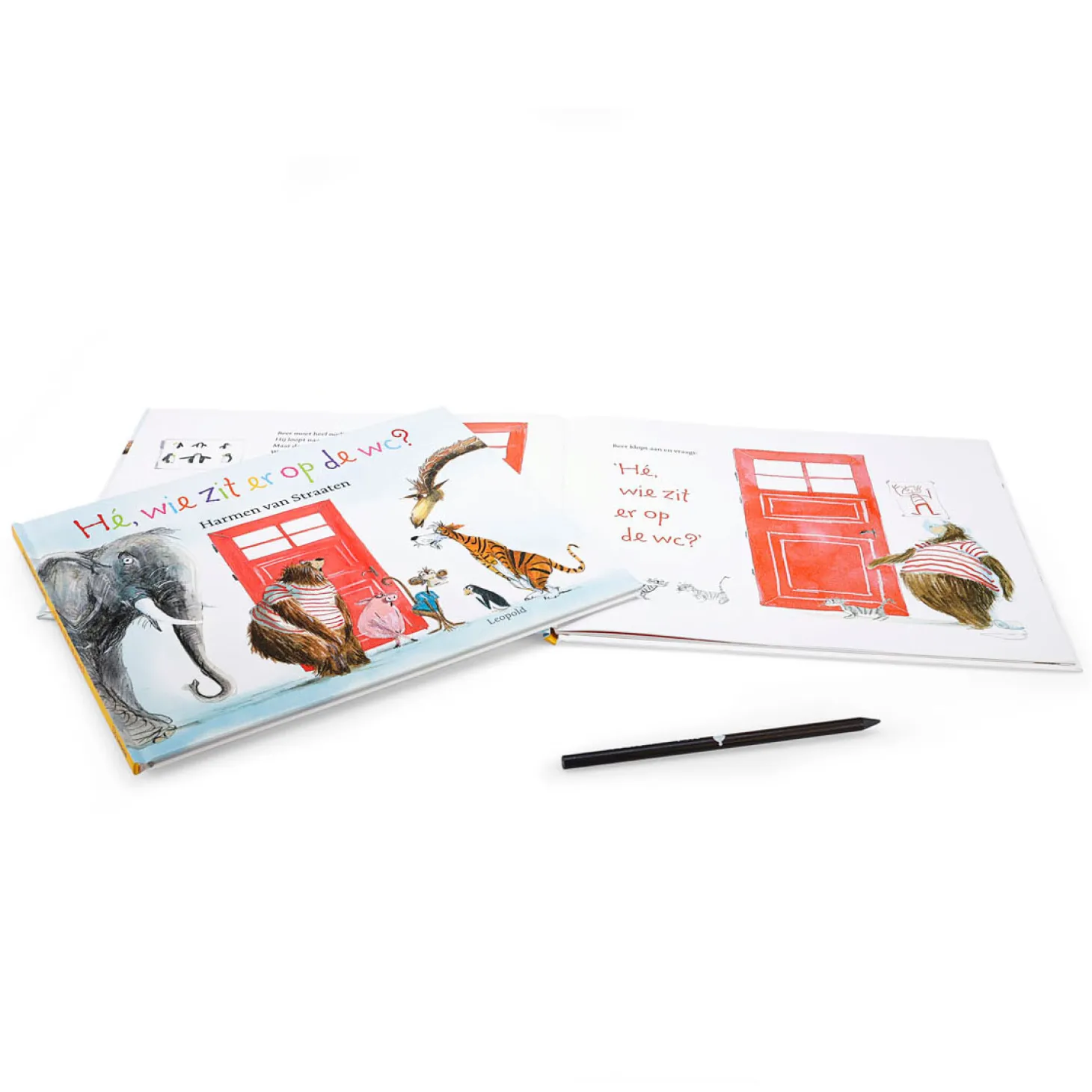 Beer moet heel nodig. Hij loopt naar de wc. Maar de deur is op slot. Wat moet hij daar nu mee? ‘Hé, wie zit daar op de wc? ‘ Raad je mee? Prachtig prentenboek van Harmen van Straaten. Het boek is opgenomen in de Prentenboeken TOP 10 van 2017!