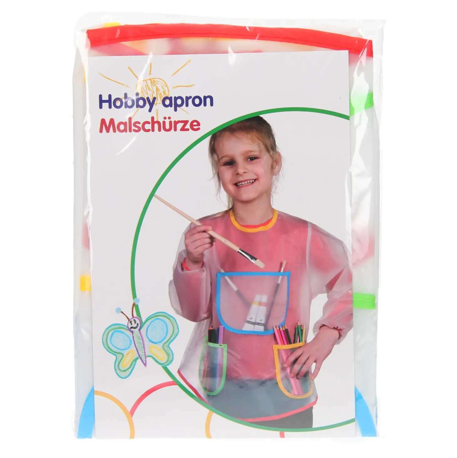 Trek dit hobbyschort aan en maak de mooiste kunstwerken zonder vies te worden! De schort is gemaakt van soepel waterafstotend materiaal en vast te maken met een eenvoudige klittenbandsluiting. De schort heeft een elastische band onderaan de mouwen, waardoor de kleding beschermd blijft. Op de voorzijde van de schort vind je 3 handige vakken, waar je gemakkelijk de knutselspullen in opbergt.