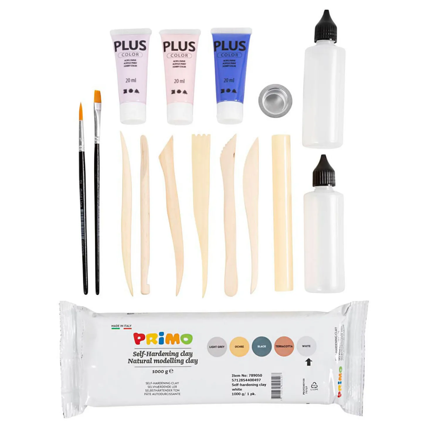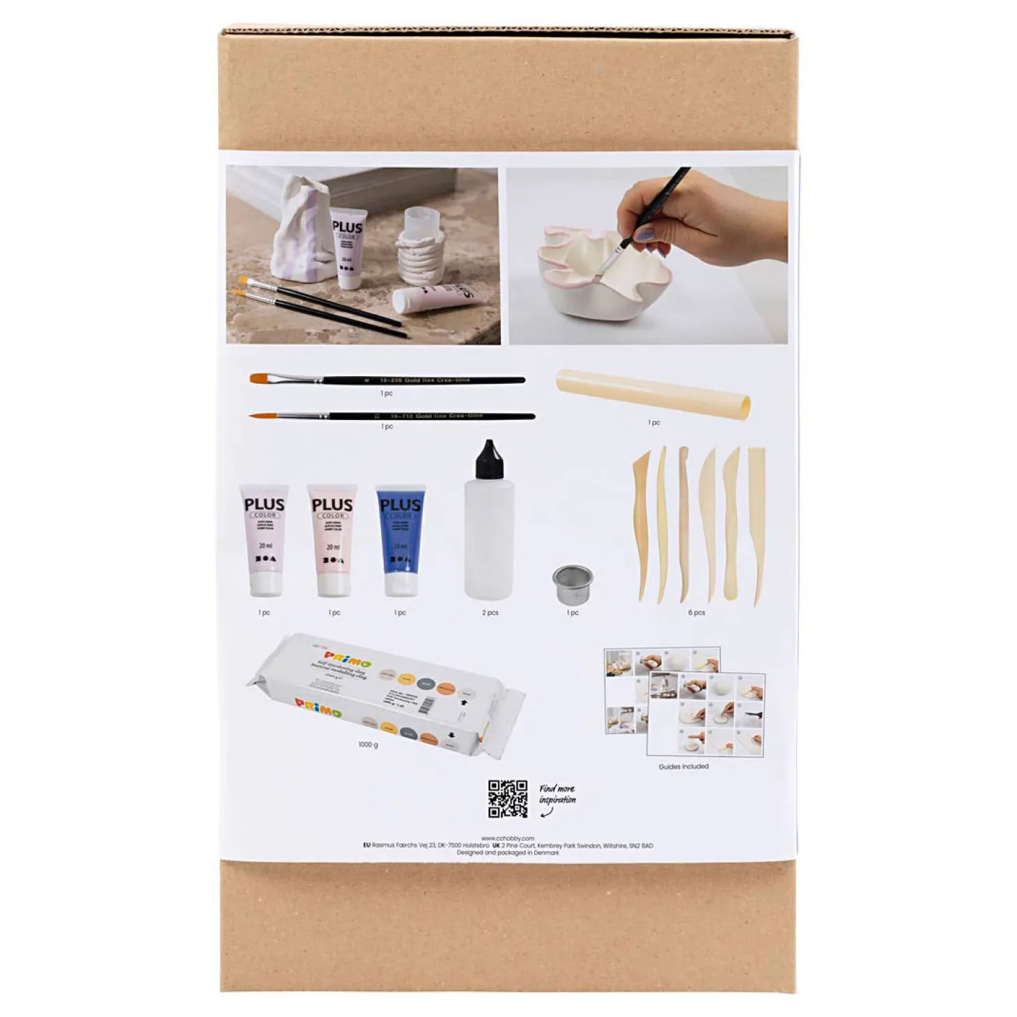 Met deze set kunt u vier unieke producten van zelfhardende klei maken �?? een kom, een kandelaar en twee vazen. De set bevat alle materialen en instructies die u nodig hebt.Als u er altijd al van droomde om zelf keramiek voor thuis te maken, dan is deze set echt ideaal. Hij bevat stapsgewijze instructies voor verschillende manieren om zelfhardende klei te gebruiken. U leert bijvoorbeeld een speciale techniek om een kandelaar en een vaas te maken, en hoe u een andere techniek gebruikt om een vaas of kom te maken..Inhoud: Klei, verf, penselen, boetseergereedschap, kaarshouder en plastic fles