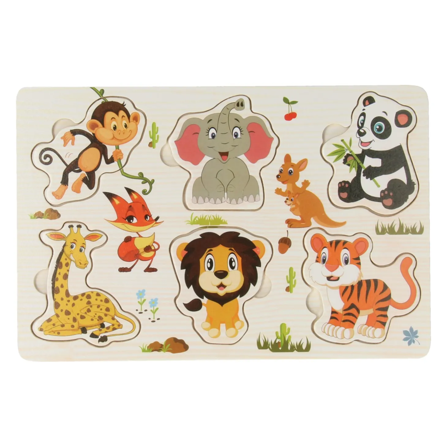Houten noppenpuzzel met 6 puzzelstukken om in te leggen. Afmetingen: 15 x 22,5 centimeter. Gemaakt van 100% FSC-gecertificeerd hout. Geschikt voor kinderen vanaf 24 maanden oud.Prijs per stuk, verschillende uitvoeringen/kleuren worden door elkaar geleverd.