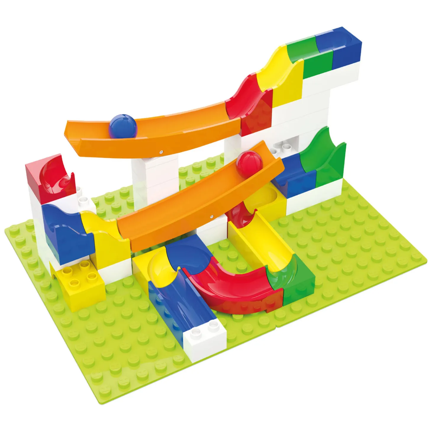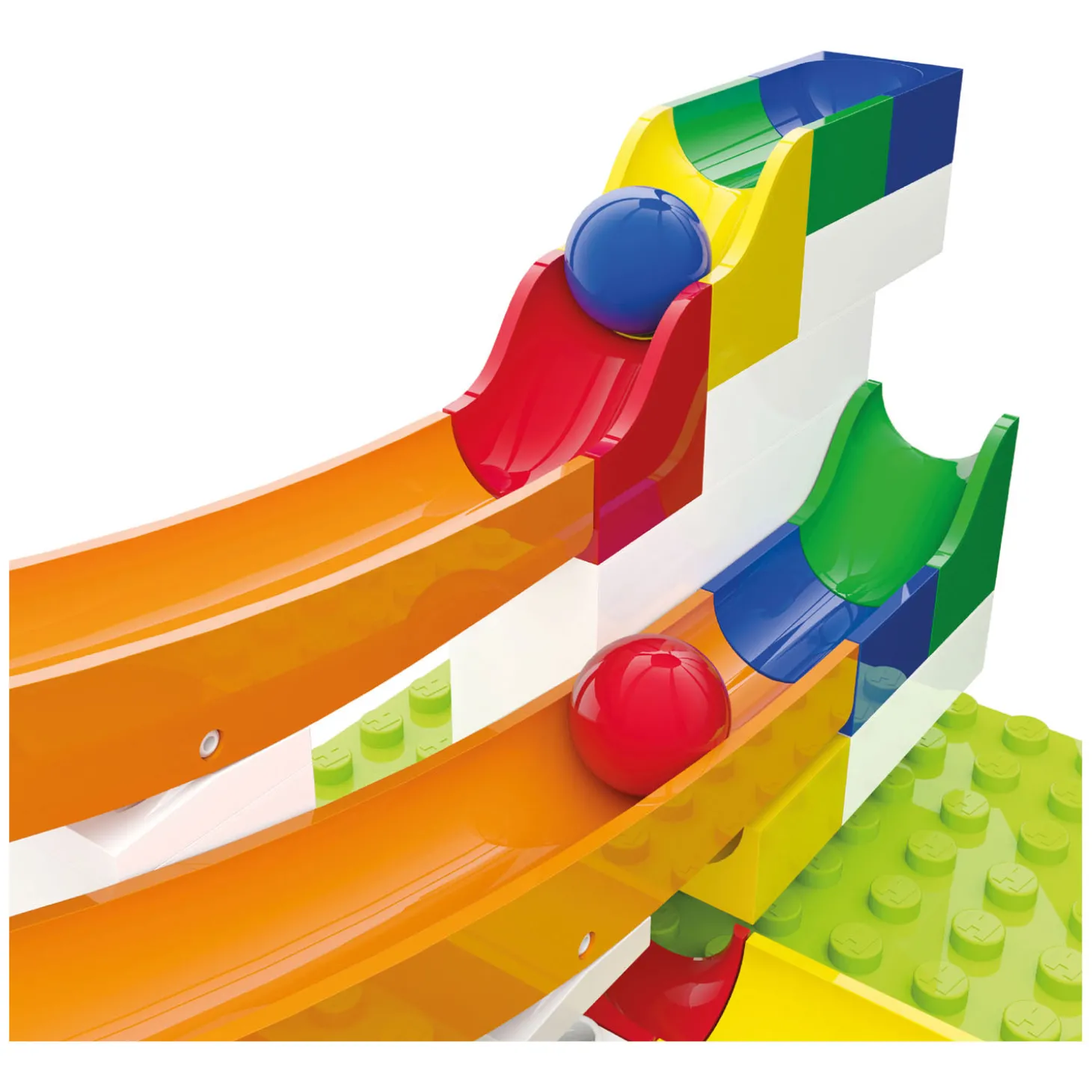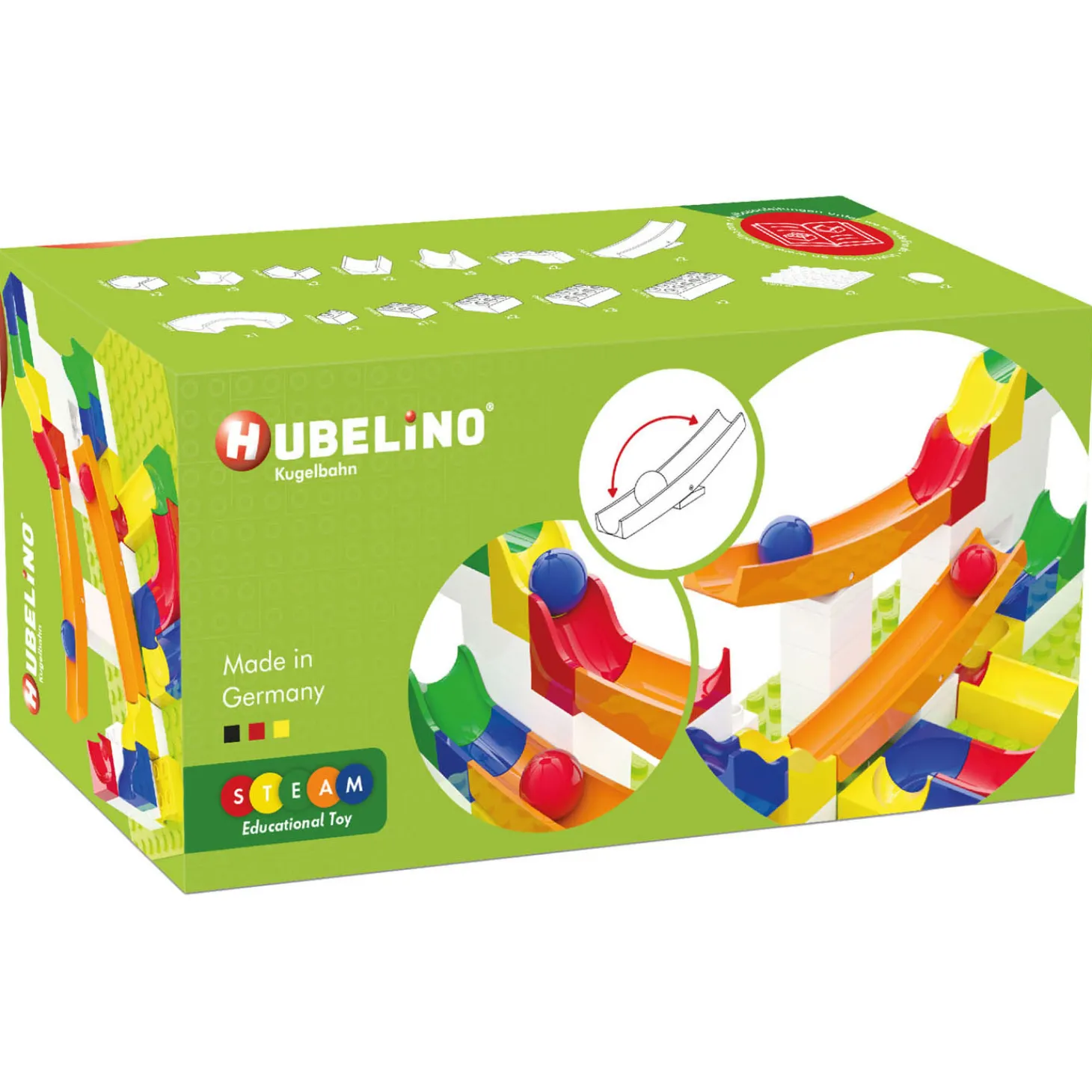 Met deze aanvulset heb je uren speel- bouw- en knikkerplezier! De knikkerbanen en bouwblokken zijn gemaakt van kwalitatief en duurzaam kunststof, hierdoor heb je er langer plezier van! Deze set is een aanvulling en kun je alleen gebruiken in combinatie met de Hubelino basis-, start- of miniset.