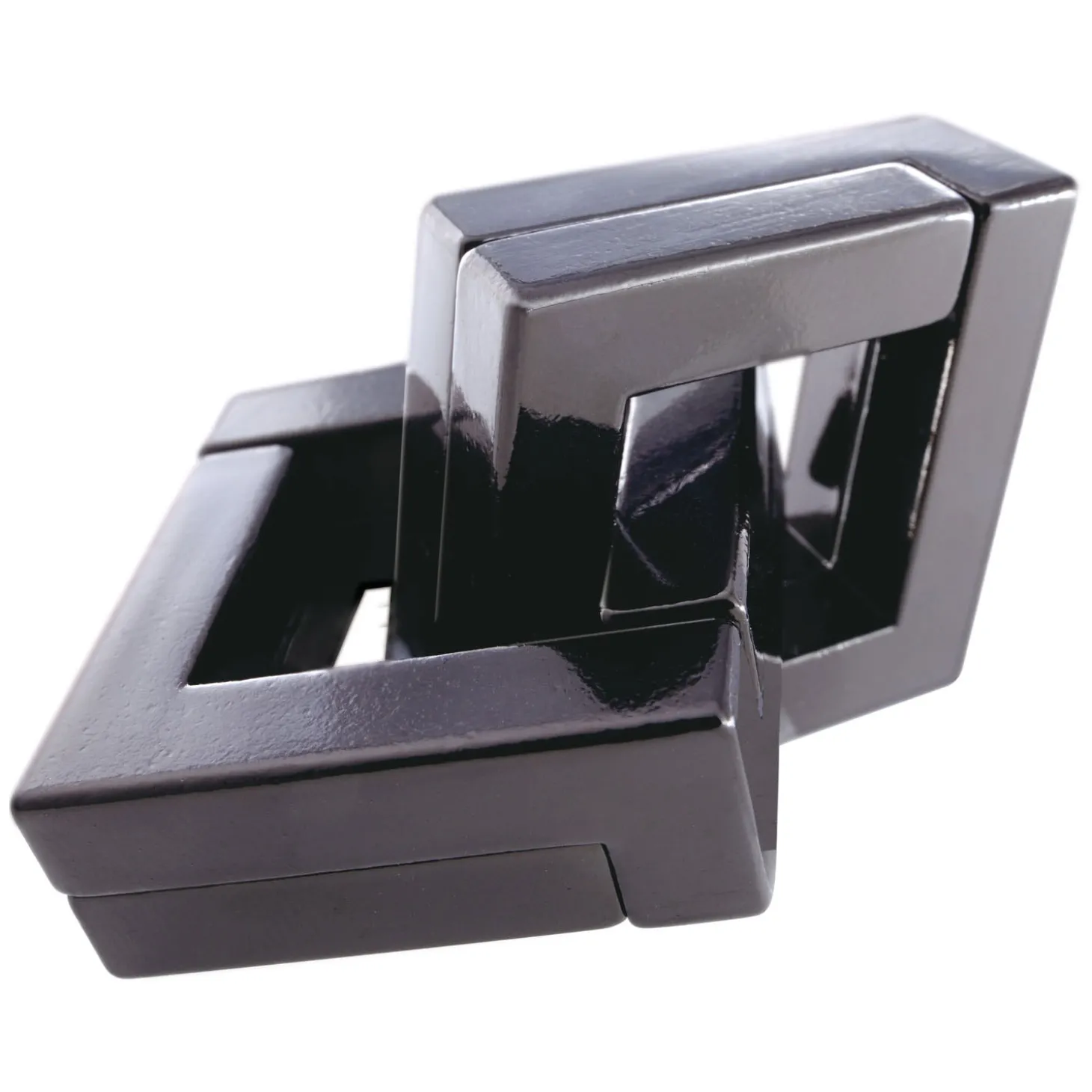 Deze puzzel bestaat uit twee vierkanten die verwikkeld zijn met elkaar. Het is de uitdaging om de verschillende onderdelen met je handen en je hersenen te scheiden van elkaar. Gelukt? Dan is het nu nog de kunst om ze weer samen te voegen tot een sterke ketting van vierkante schakels.