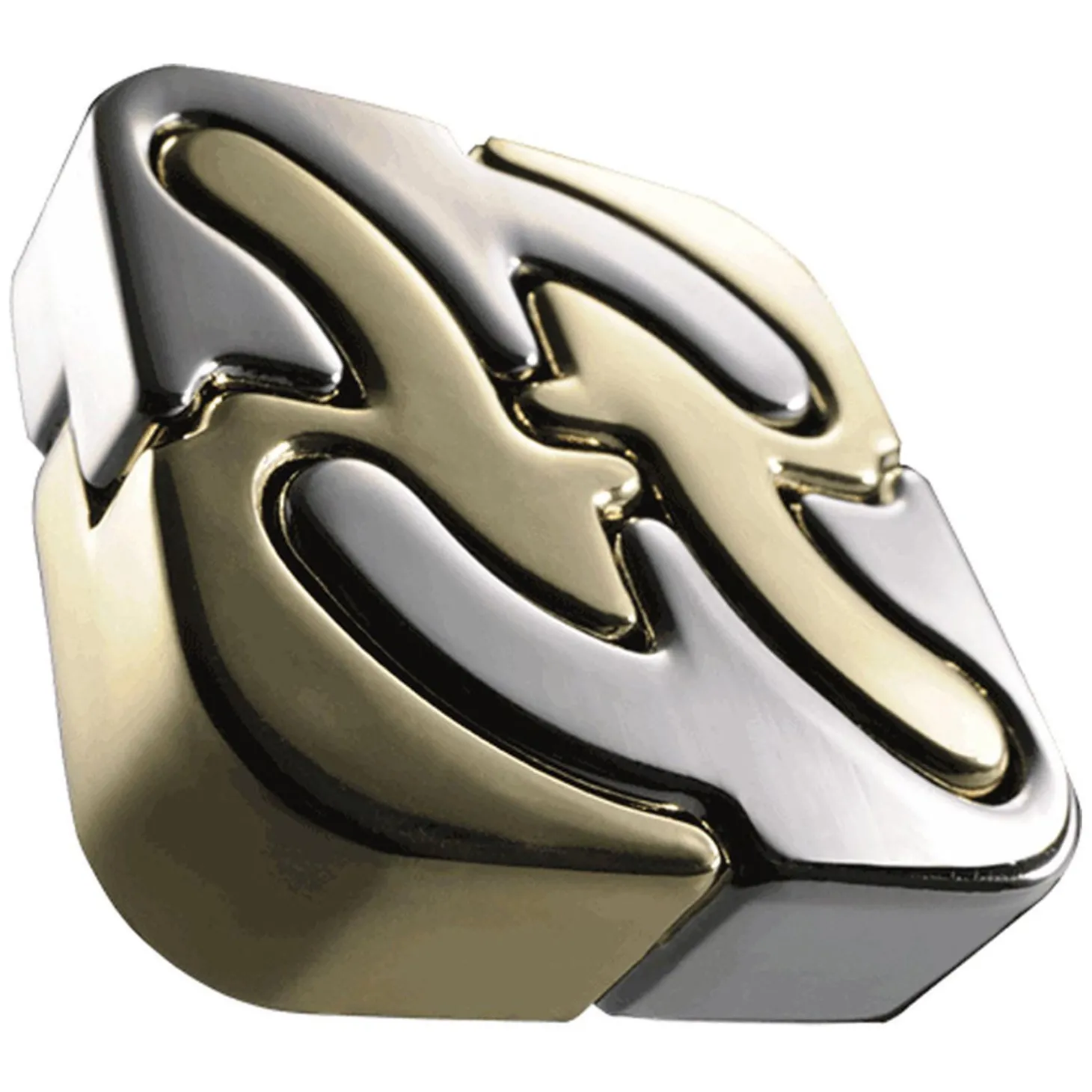 Deze puzzel bestaat uit verschillende onderdelen die samen een zilver-gouden vierkant schild vormen. Het is de uitdaging om de verschillende onderdelen met je handen en je hersenen te scheiden van elkaar. Gelukt? Dan is het nu nog de kunst om ze weer samen te voegen tot een vierkant schild.