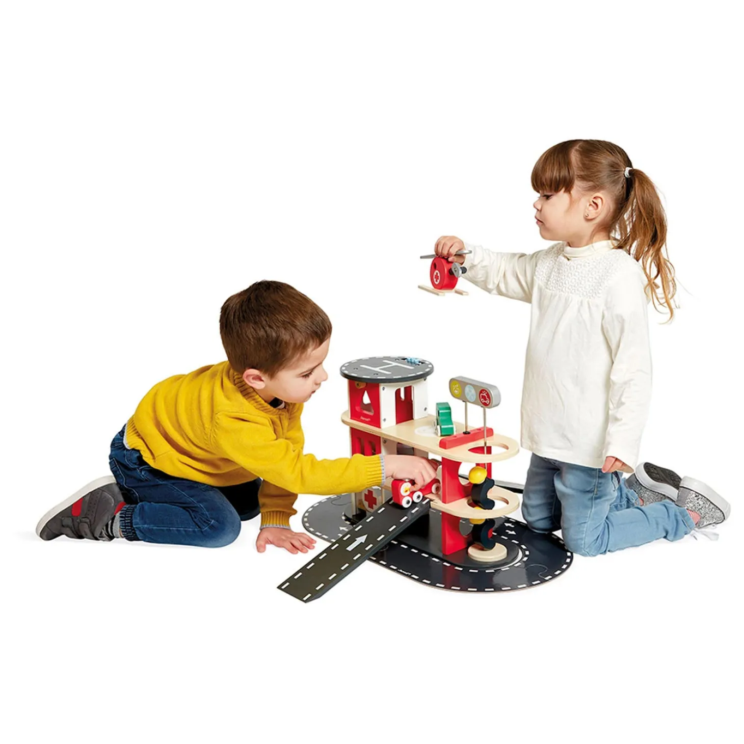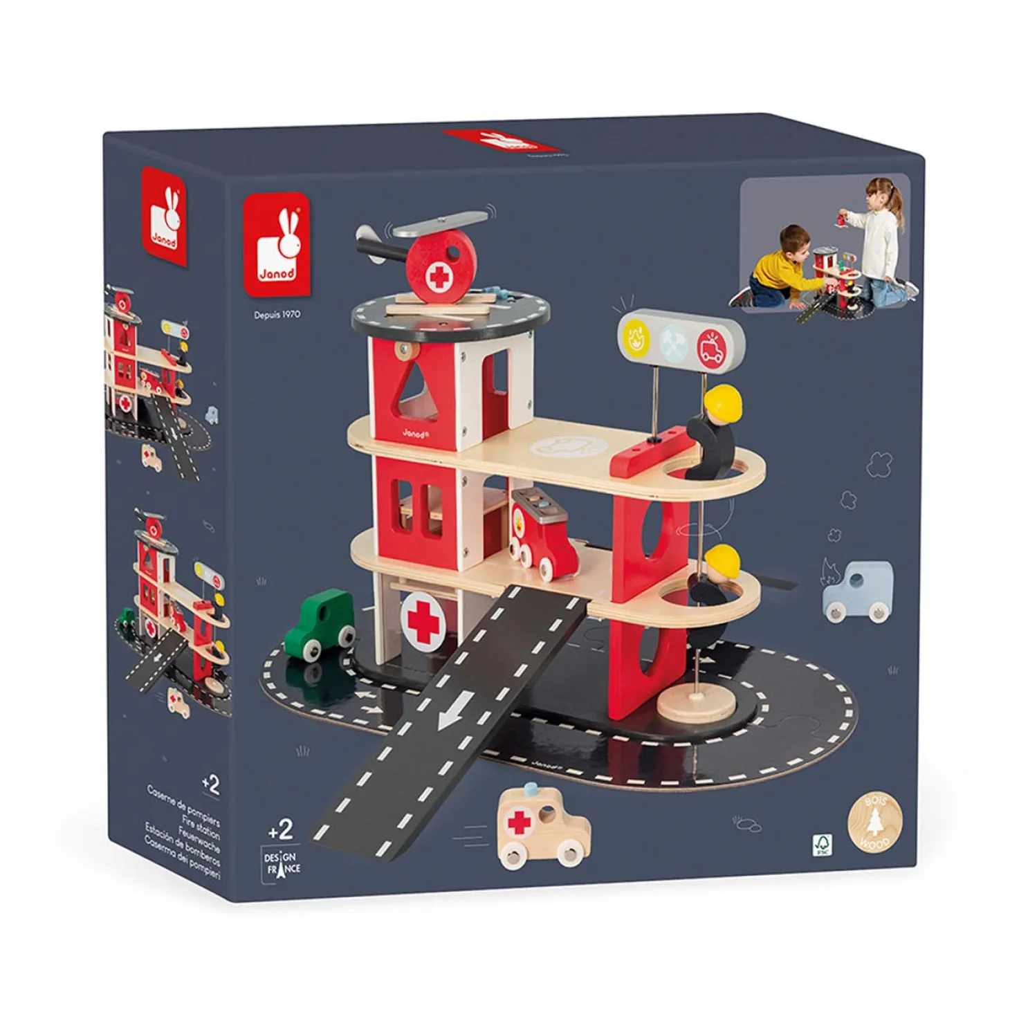 Gegarandeerd urenlang speelplezier met deze houten brandweer kazerne, 3 auto’s, brandweerwagen en een helikopter. Speelgoed van FSCTM-hout. Perfect voor het ontwikkelen van de fijne motoriek en verbeeldingskracht. Educatief speelgoed voor kinderen vanaf 2 jaar.