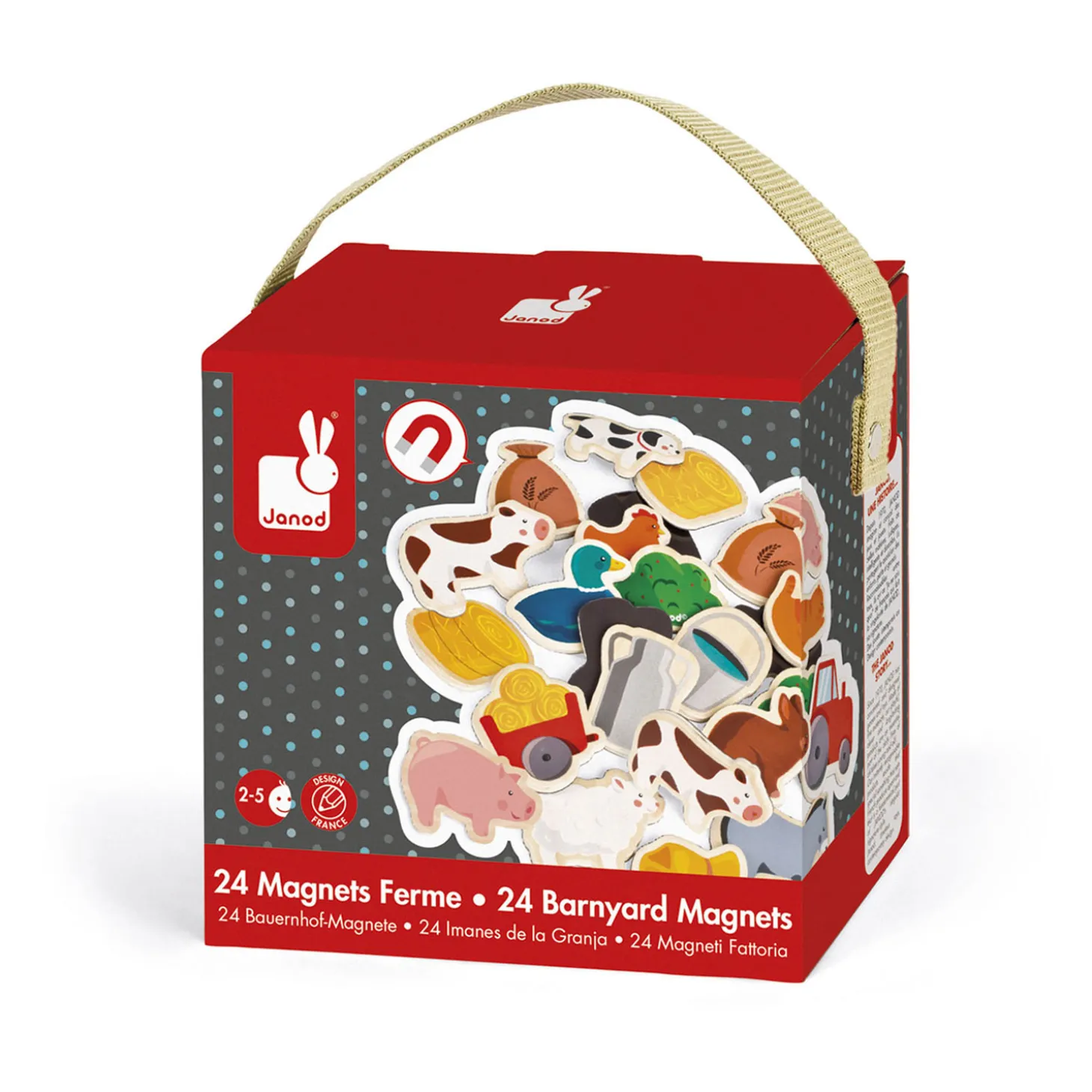 Ontdek de wereld van de boerderij met deze magneten van Janod. Plaats de trekker, de koe en de strobaal op een bord of ander magnetisch oppervlak en creƫer de leukste avonturen op de boerderij. De set bevat 24 houten magneten met heldere afbeeldingen.