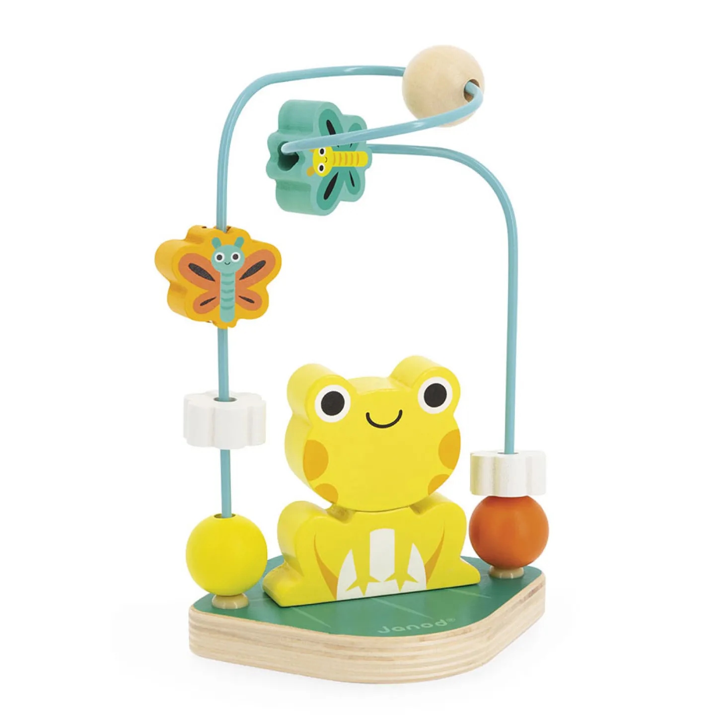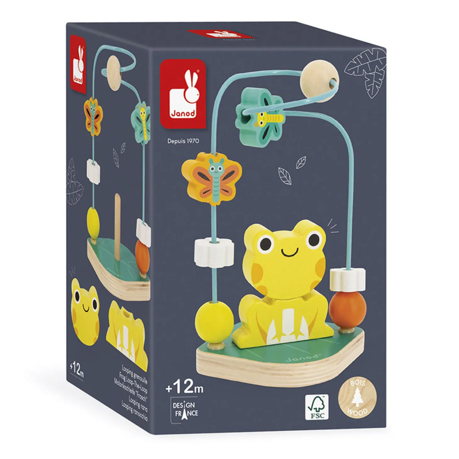 Baby zal urenlang plezier beleven aan het manipuleren van deze kleurrijke houten lus. Een 2-in-1 activiteitenspeelgoed, deze lus is ook een mooi stapelbaar speelgoed: de kikker bestaat uit 2 delen om steeds weer in elkaar te zetten! Kinderen vanaf 12 maanden zullen zich vermaken met het schuiven van de elementen over het parcours: vlinders, parels en bloemen… 7 elementen in totaal. Dit speelgoed voor jonge kinderen is ideaal voor kinderen vanaf 1 jaar. Ze kunnen hun fijne motoriek ontwikkelen en vertrouwd raken met kleuren terwijl ze plezier hebben! Dit houten kinderspeelgoed is gemaakt van verf op waterbasis en hout uit duurzaam beheerde, FSC®-gecertificeerde bossen.
