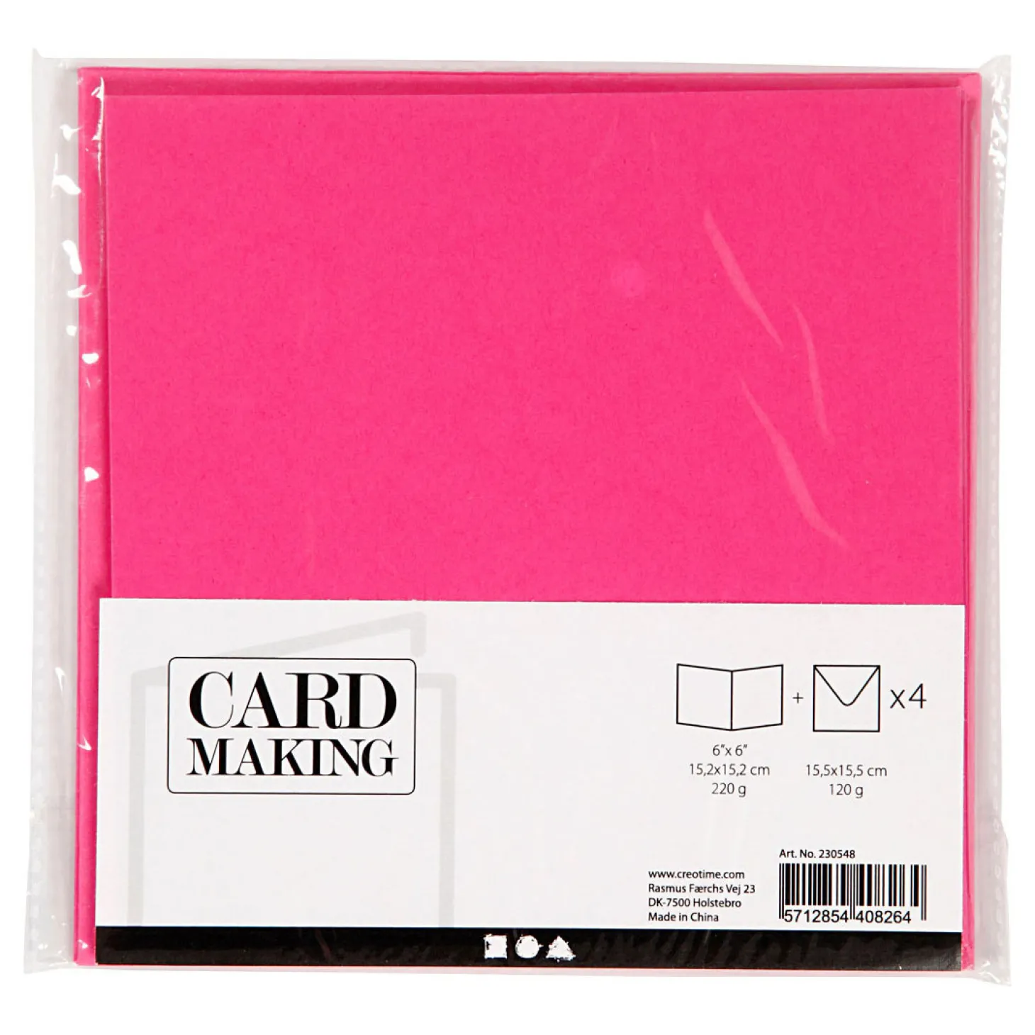 Dubbelzijdige kaarten gemaakt van stevig karton. Voorzien van een bijpassende papieren envelop met opnieuw bevochtigbare gom op de flap (bevochtig om de envelop te verzegelen).Gewone kaarten die kunnen worden gebruikt voor alle soorten kaartdecoratie en technieken voor het maken van kaarten. Versier met stickers, papier of kaartponsjes, tape, 3D-motieven en nog veel meer.