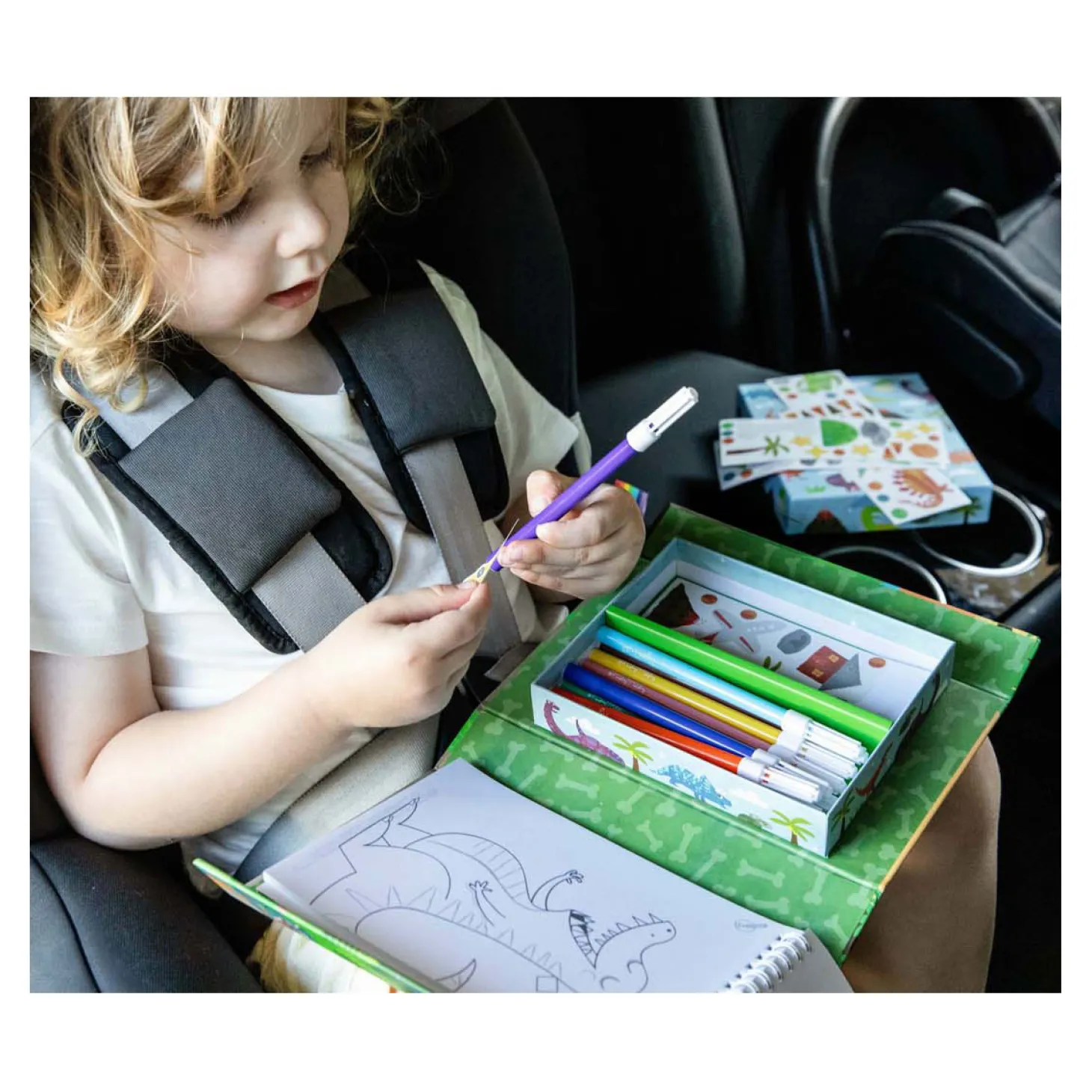 • Complete set: Bevat alles wat nodig is voor urenlang kleurplezier: stiften, stickers en kleurboekjes, allemaal handig verpakt voor creatieve uitspattingen thuis of onderweg.