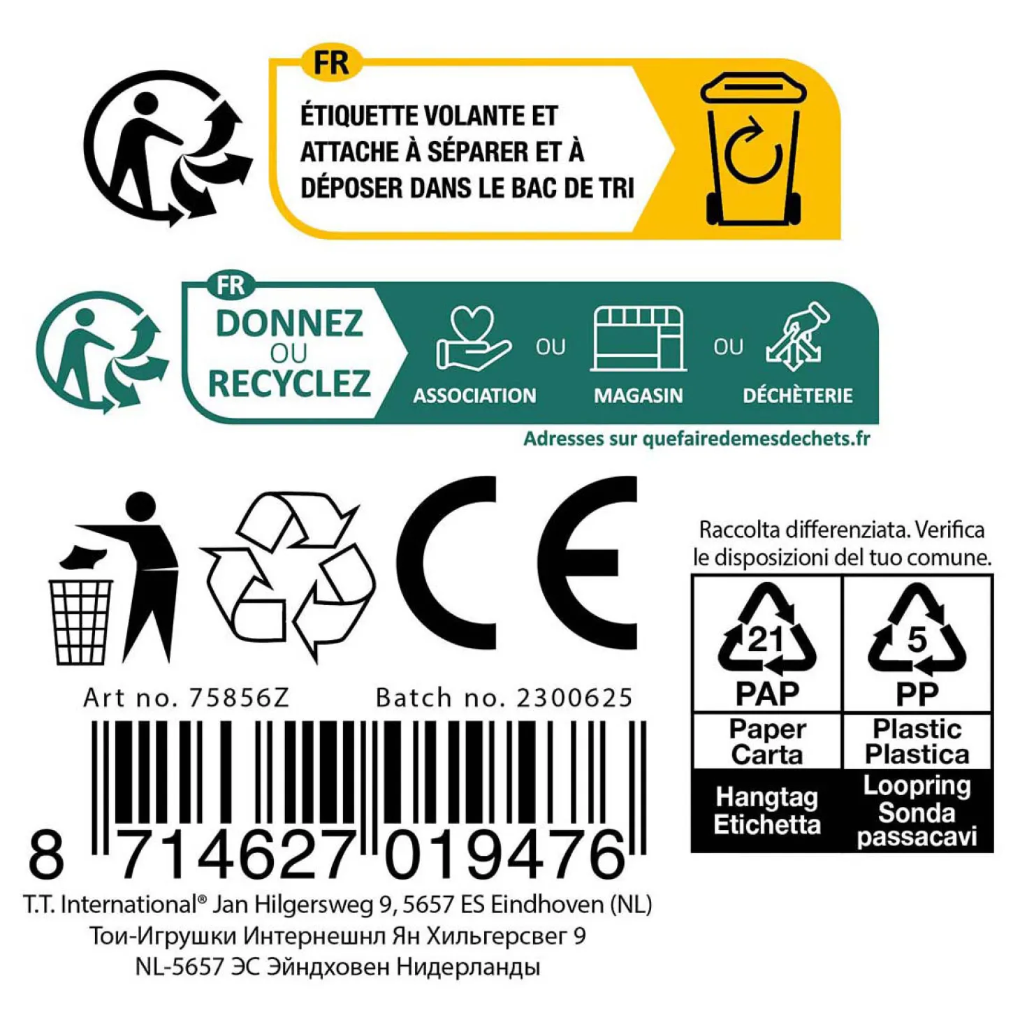 - Waarschuwing: Niet geschikt voor kinderen onder de 3 jaar ivm kleine onderdelen.
