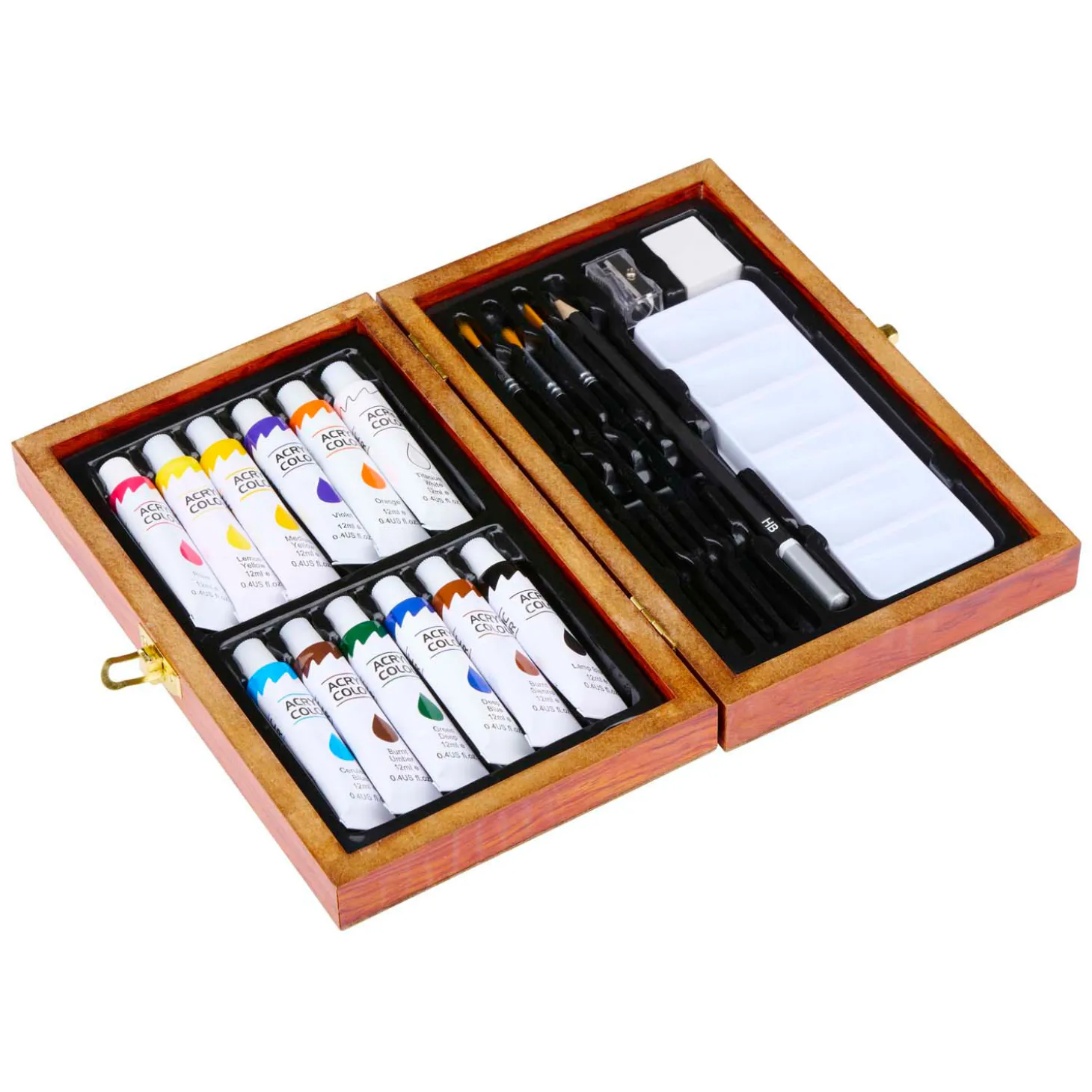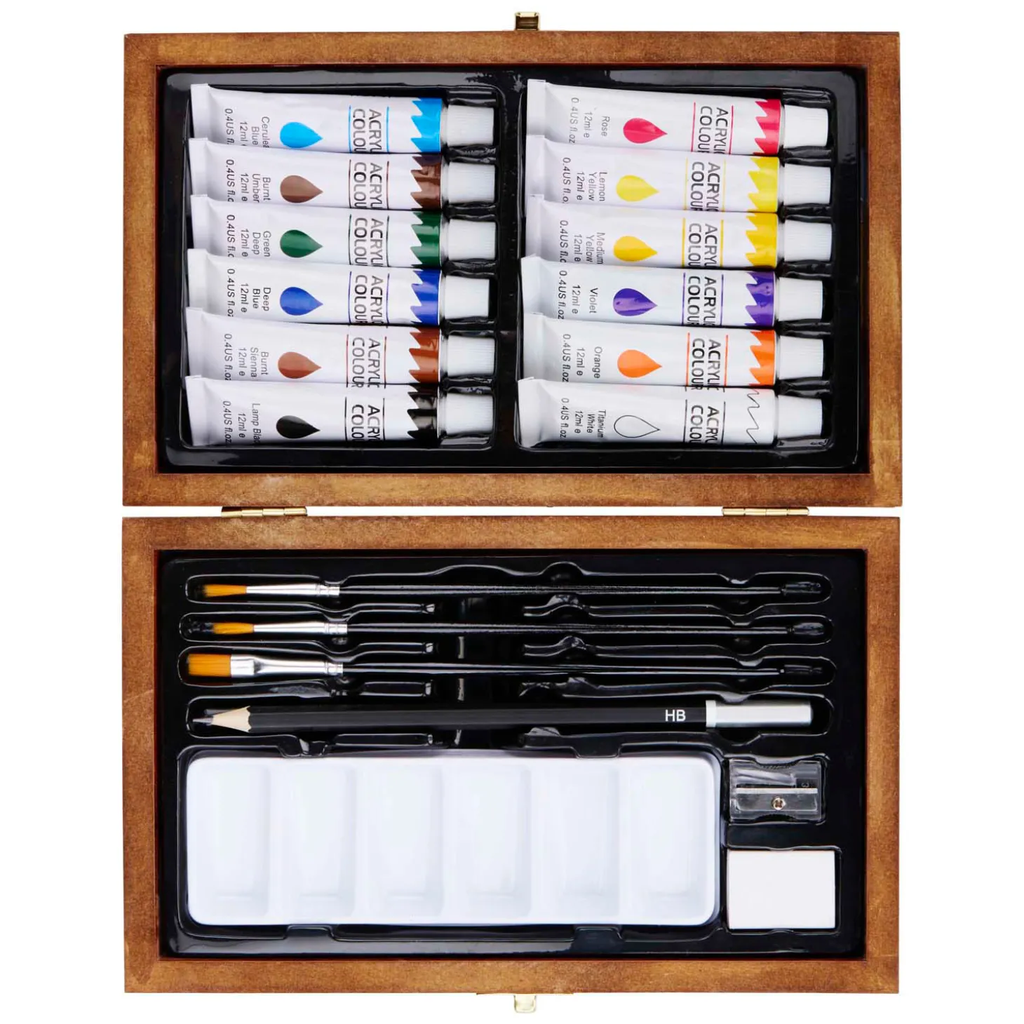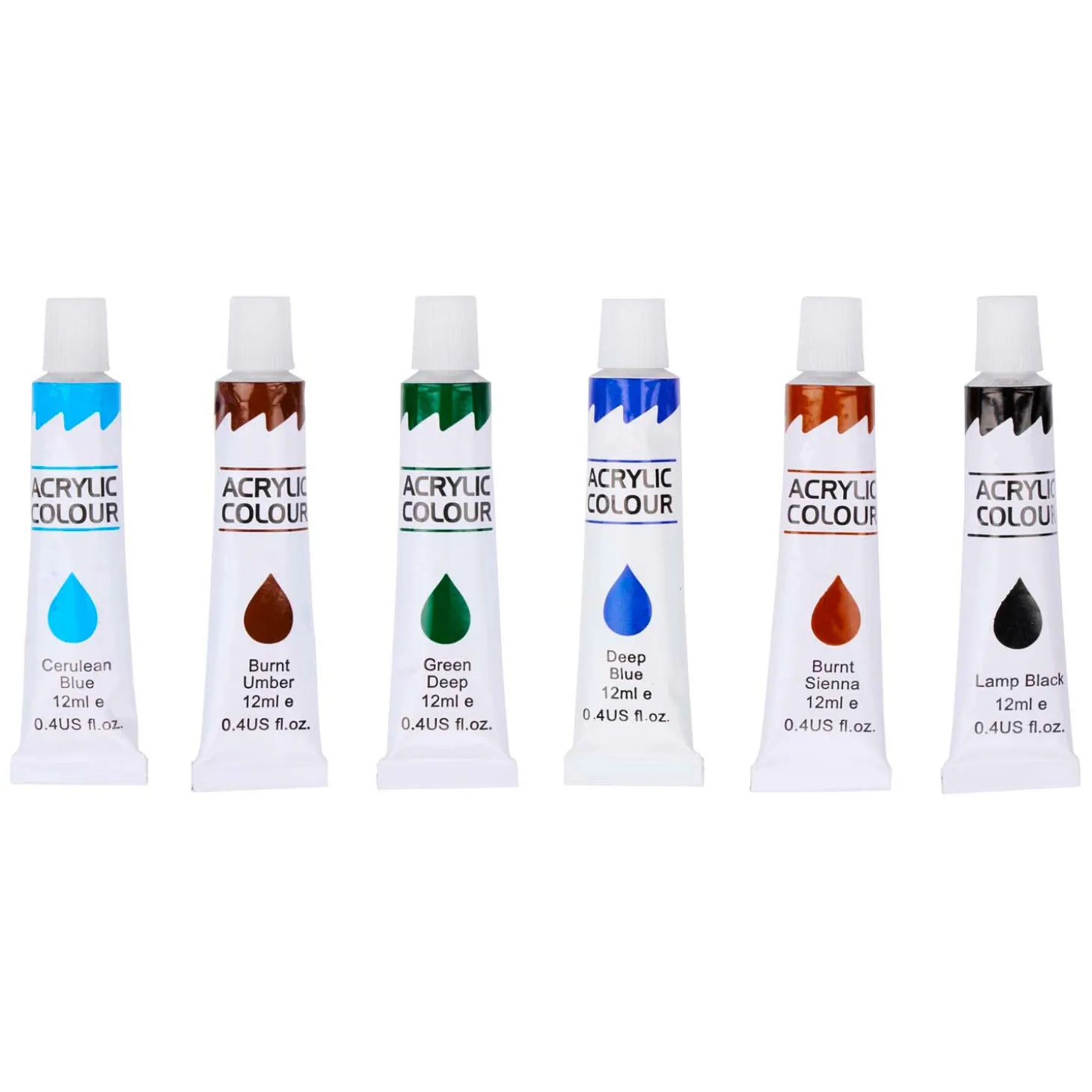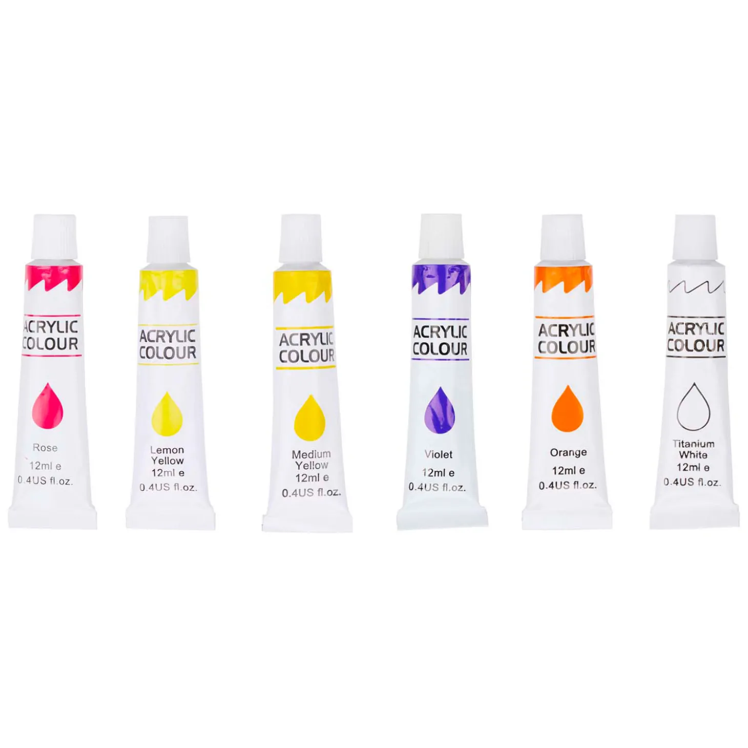De set bevat 12 verschillenden kleuren acrylverf.