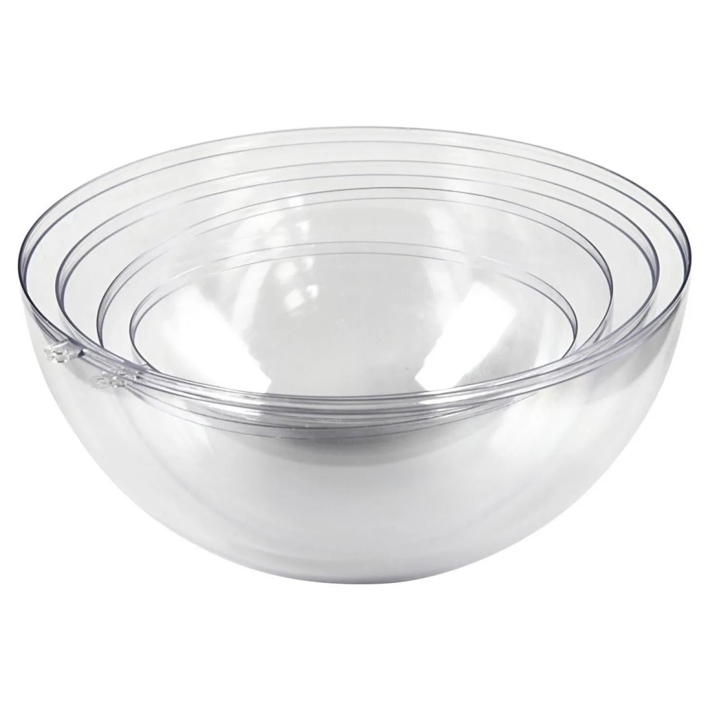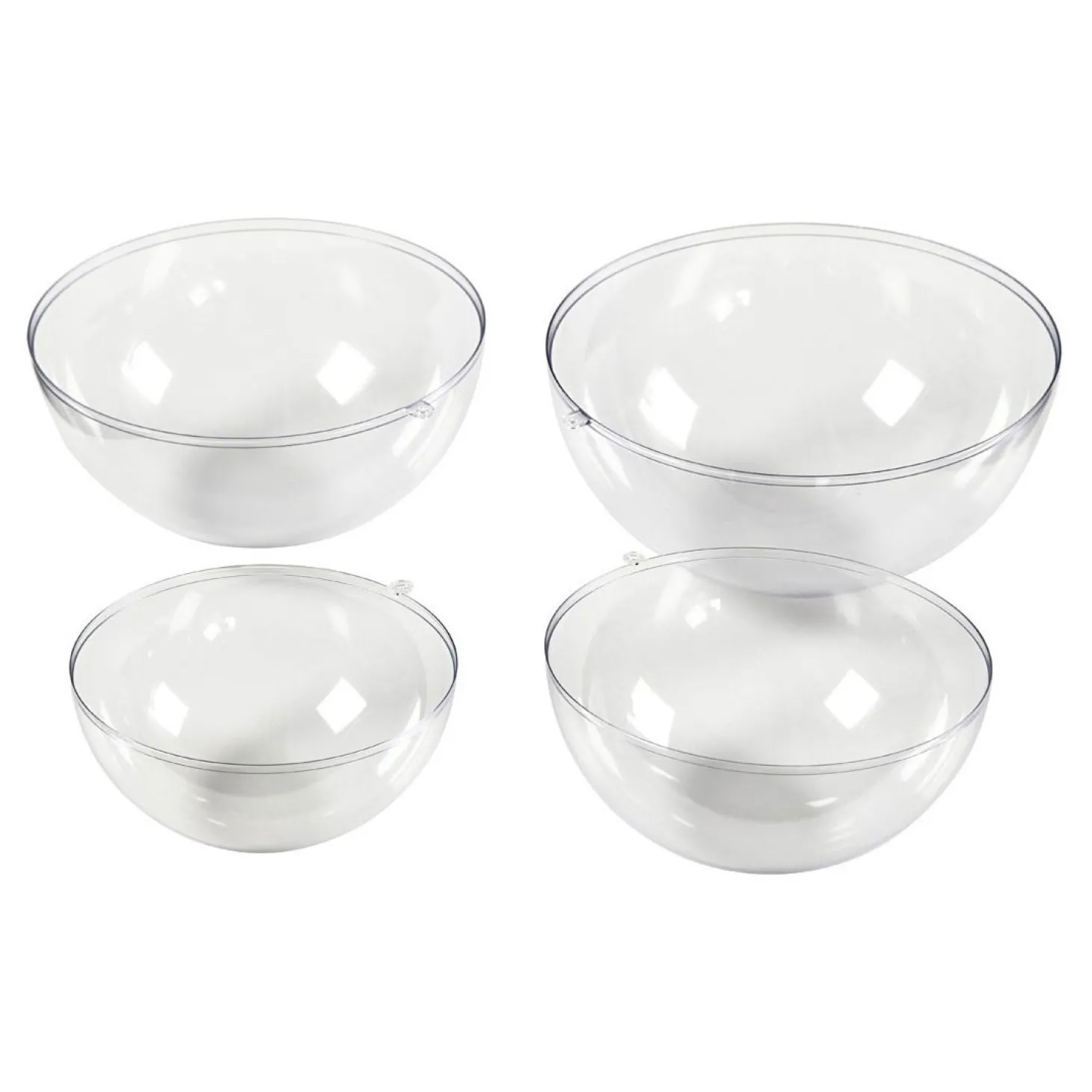 Vormen van transparant hard plastic voor het gieten van halfronde schalen van beton (en andere gietmaterialen die tijdens het drogen niet uitdijen.Set bevat 4 verschillende maten en kunnen na het schoonmaken opnieuw gebruikt worden
