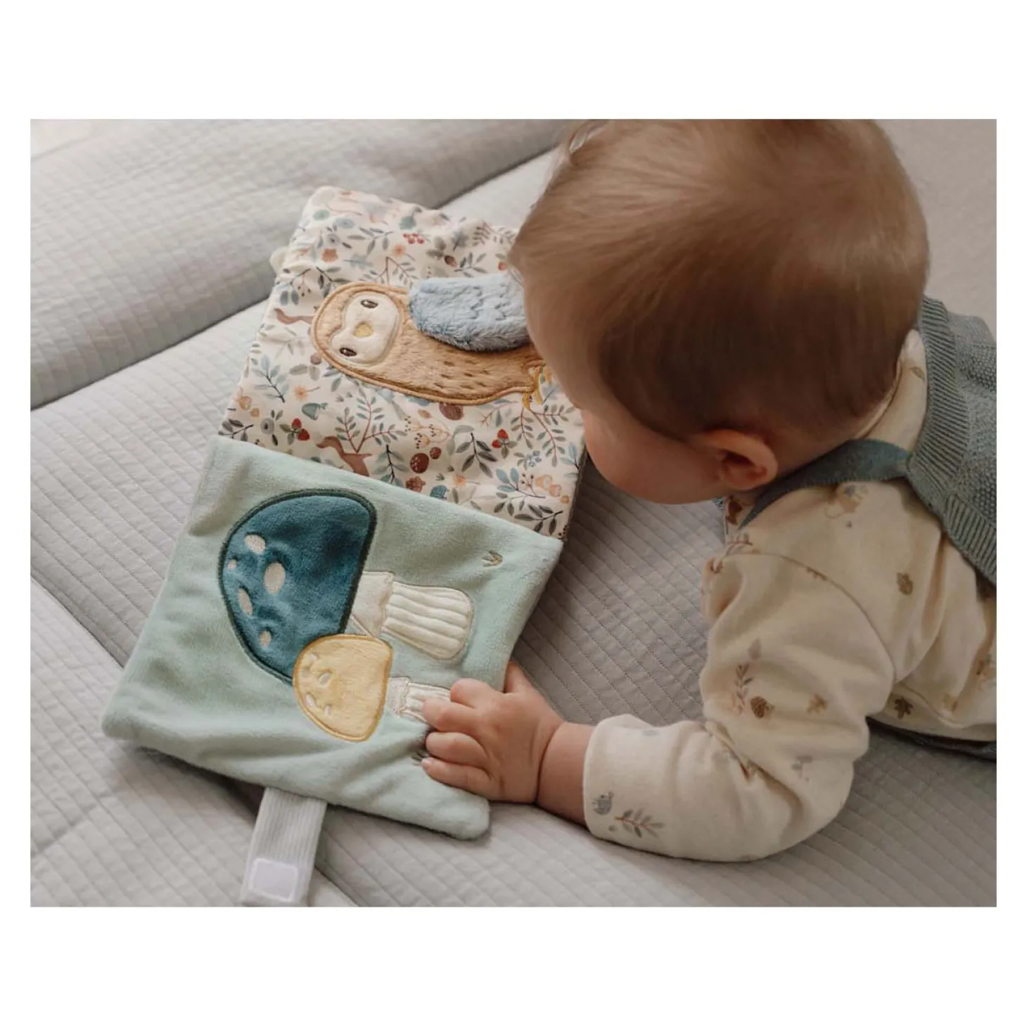 Je hoeft je niet te vervelen met dit kleurrijke activiteitenboekje van Forest Friends. Het lieve vosje nodigt je uit om een kijkje te nemen in het betoverende bos. Er valt veel te ontdekken met de verschillende texturen en activiteiten, zoals een spiegeltje, een rammelaar en verstopte speeltjes. Ook heeft het zachte boekje verschillende labels om aan te voelen. Dit boekje prikkelt niet alleen de zintuigen, maar is ook goed voor de ontwikkeling van de hand-oogcoördinatie.