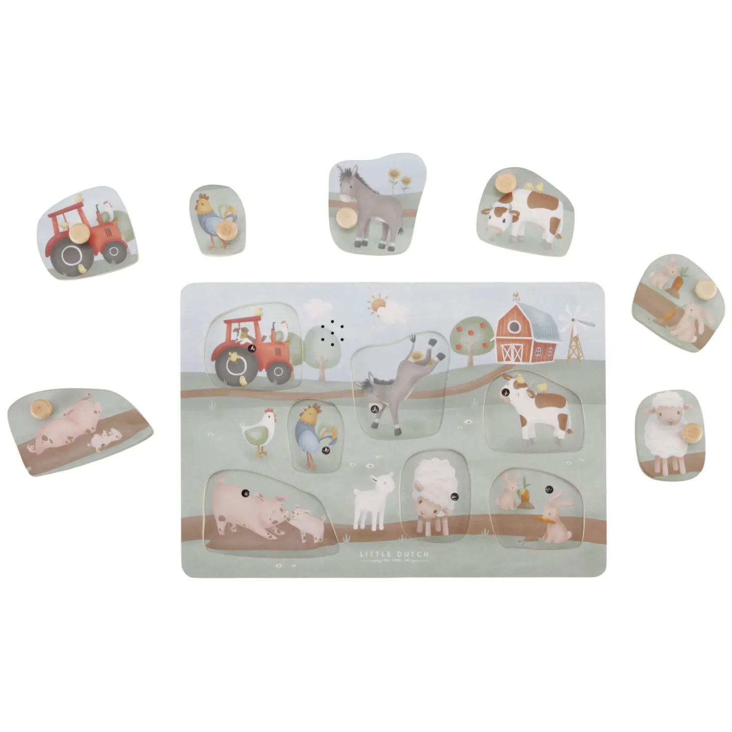 Little Dutch Houten Geluiden Noppenpuzzel Little Farm FSC, 7st.