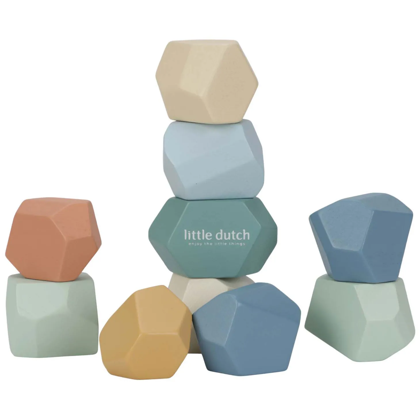 Stapelen, balanceren en bouwen! Begin maar met bouwen en kijk hoe indrukwekkend je torens en sculpturen zijn! De 10 houten stapelstenen hebben elk een eigen unieke vorm, kleur en gewicht. Zo is elk bouwwerk dat je maakt uniek. Deze speelse stenen in boskleuren spreken tot de verbeelding van je kleintje. Het is niet alleen leuk en uitdagend om met deze ongelijke stenen een toren te bouwen, het is ook nog eens spannend! Blijft de toren staan of valt hij om? Het spelen van dit stapel- en balanceerspel bevordert de hand-oogcoördinatie en probleemoplossende vaardigheden, terwijl je kindje zich urenlang vermaakt!