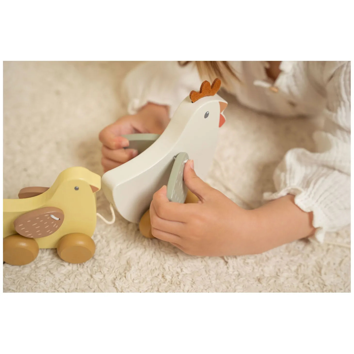 Deze kippen gaan graag met je mee op ontdekkingsreis door het huis. Trek aan het touwtje en ga samen op avontuur! Deze trekdieren zijn gemaakt van duurzaam hout. Het moedigt jouw kindje aan om te lopen en helpen bij de motorische ontwikkeling.