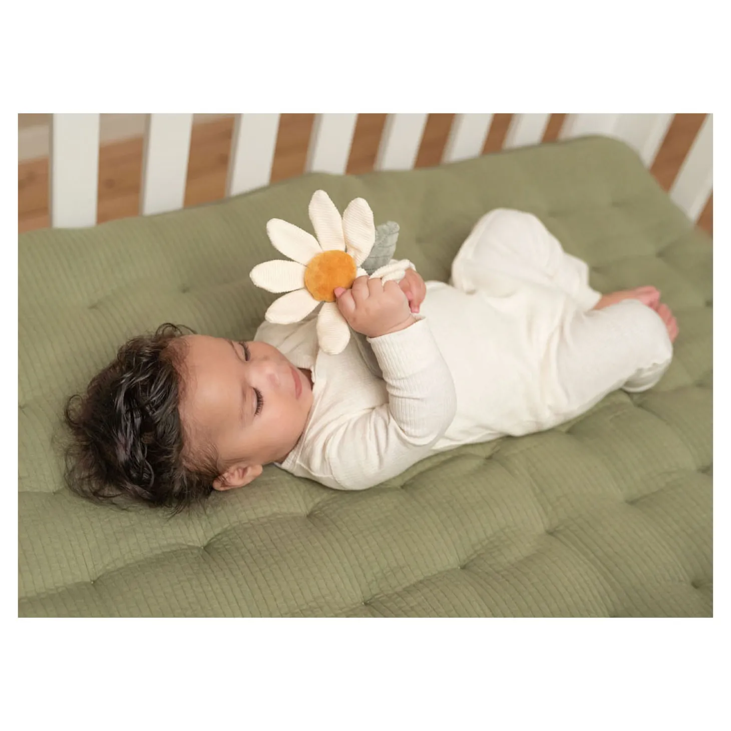 Hoe schattig is deze rammelaar in de vorm van een bloem uit de Little Farm collectie! Als je er mee speelt hoor je een plezierig geluidje. In de blaadjes van de bloem is een knisper verstopt voor extra plezier. De rammelaar stimuleert de hand-oogcoördinatie, is van heerlijk zacht materiaal gemaakt en kan makkelijk door kleine kinderhandjes vastgepakt worden.