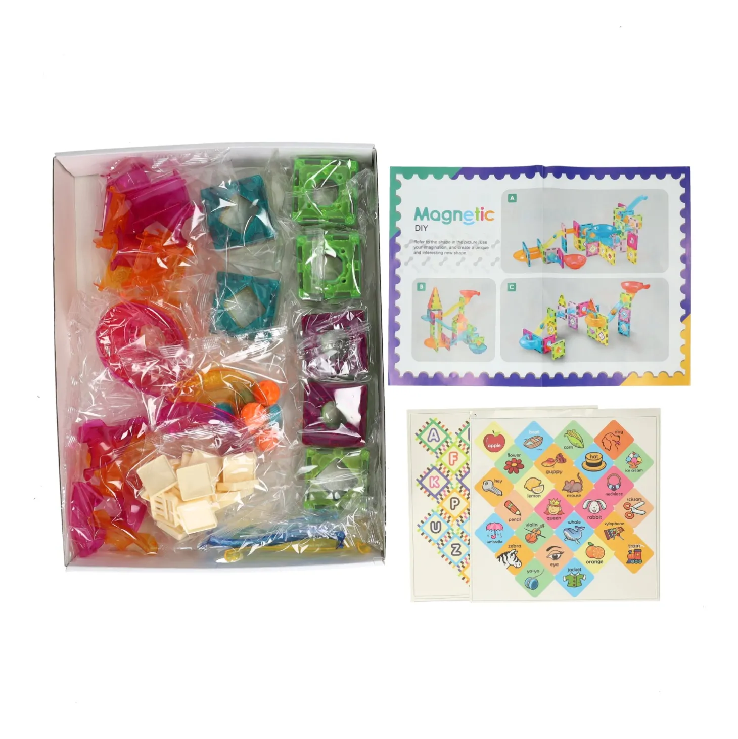 ā¢Inclusief magnetische bouwstenen, knikkerbaanstukken en knikkers