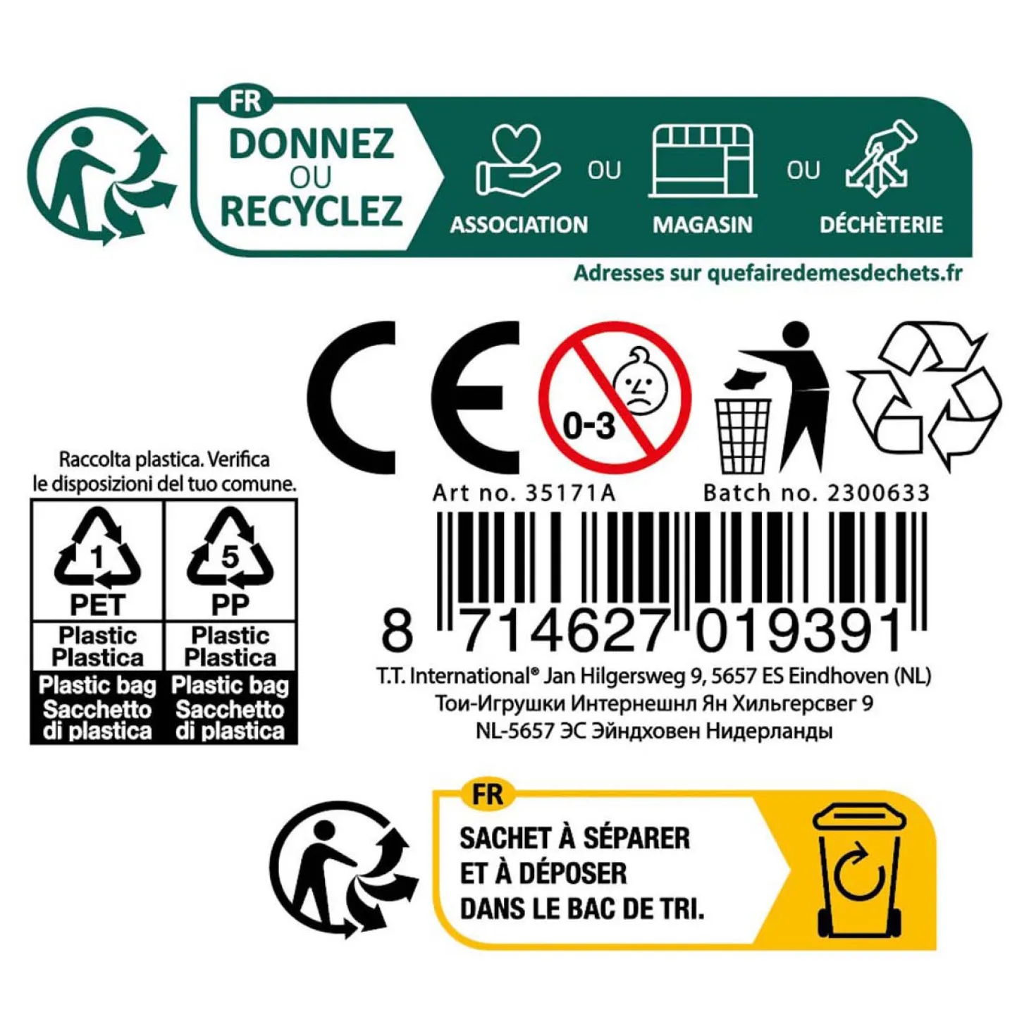- Waarschuwing: Niet geschikt voor kinderen onder de 3 jaar ivm kleine onderdelen.