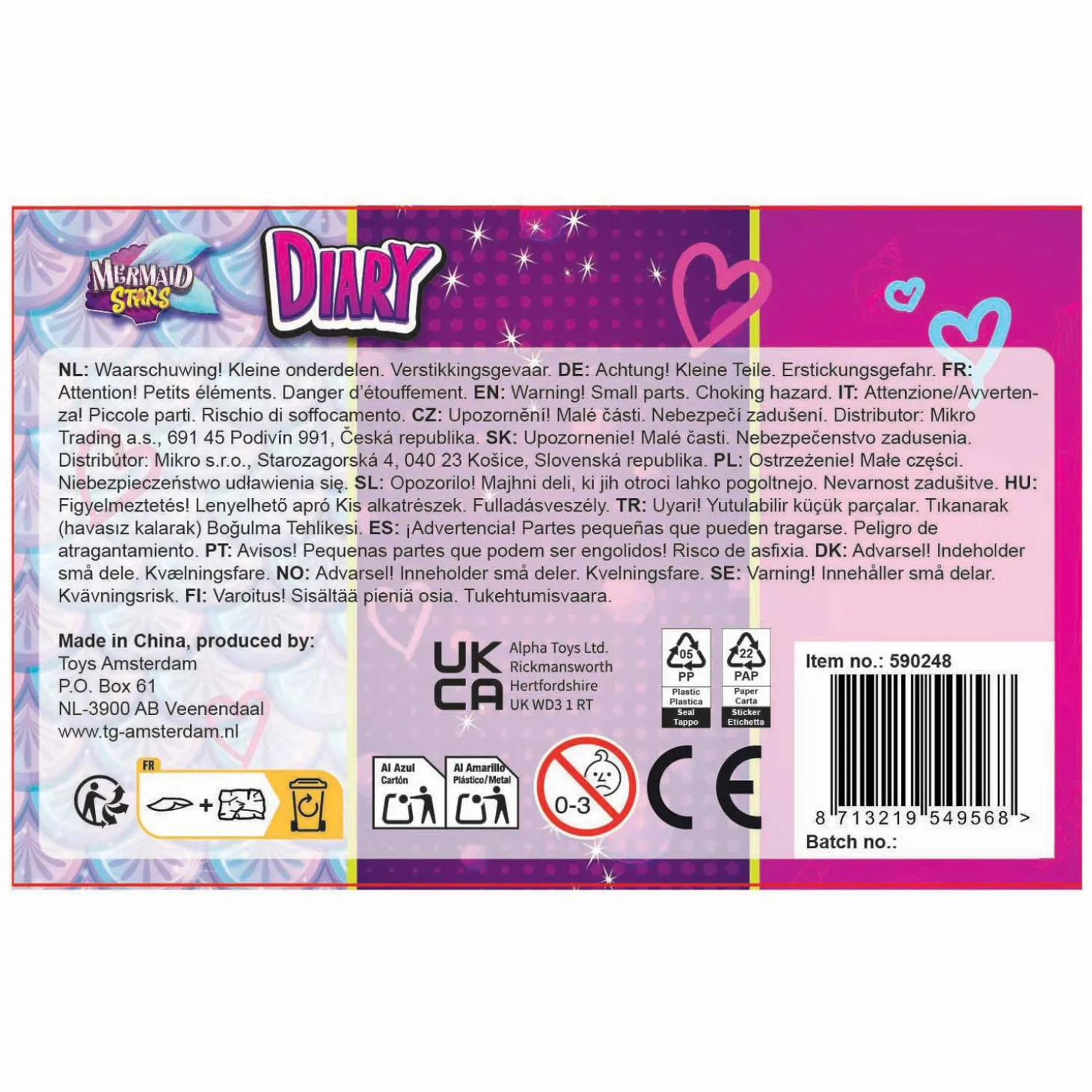 - Waarschuwing: Niet geschikt voor kinderen onder de 3 jaar ivm kleine onderdelen.