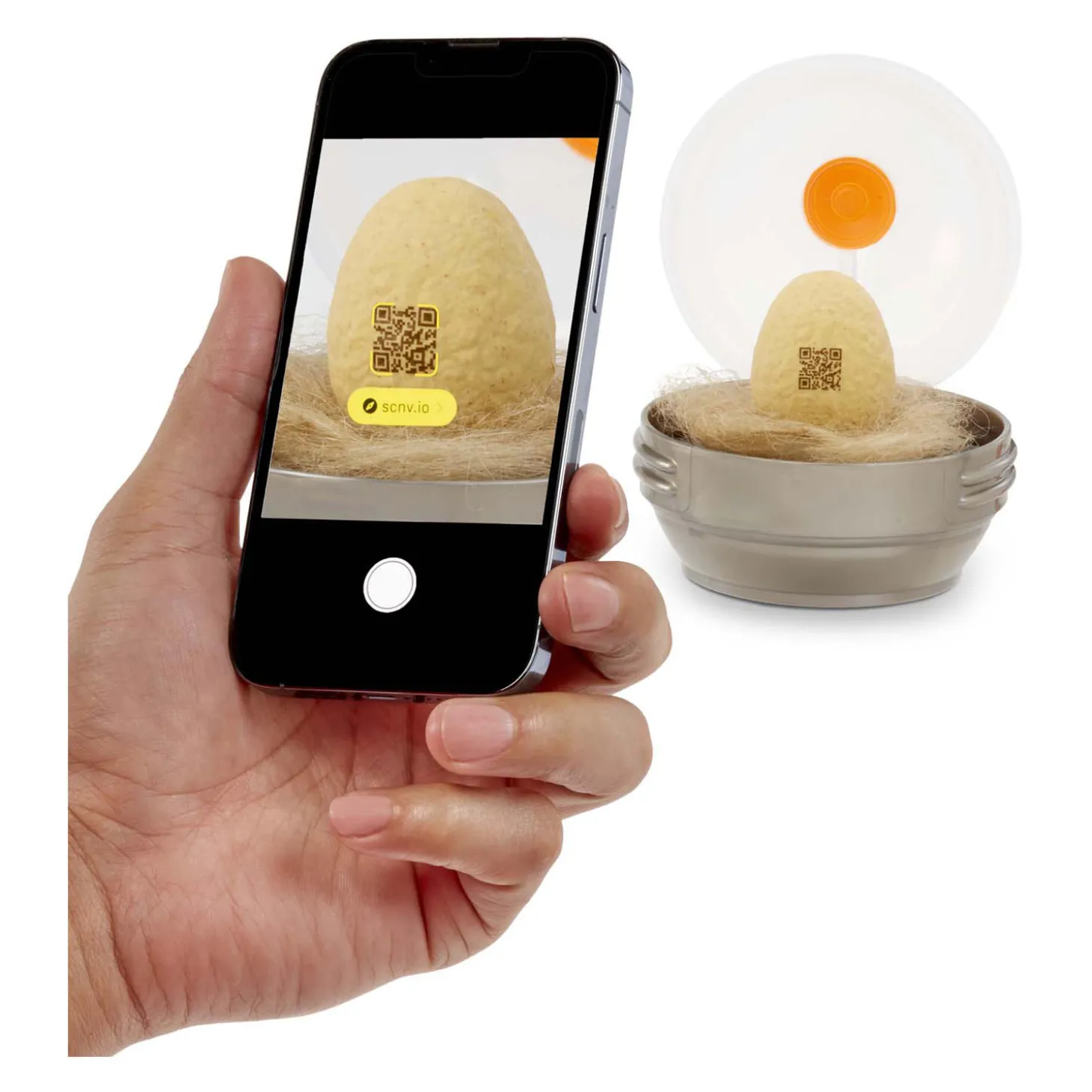 Scan de QR-code op het ei of in de verzamelgids om fascinerende informatie te ontdekken over je dinosaurus!
