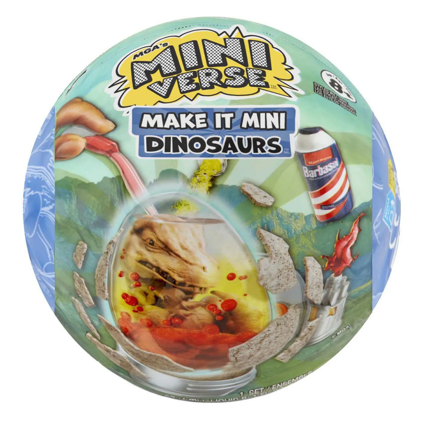 Verzamel alle 12 Make It Mini⢠Dinosaursā¢! Ga naar de MGA’s Miniverse⢠Store om meer MAKE IT-verzamelitems te ontdekken.