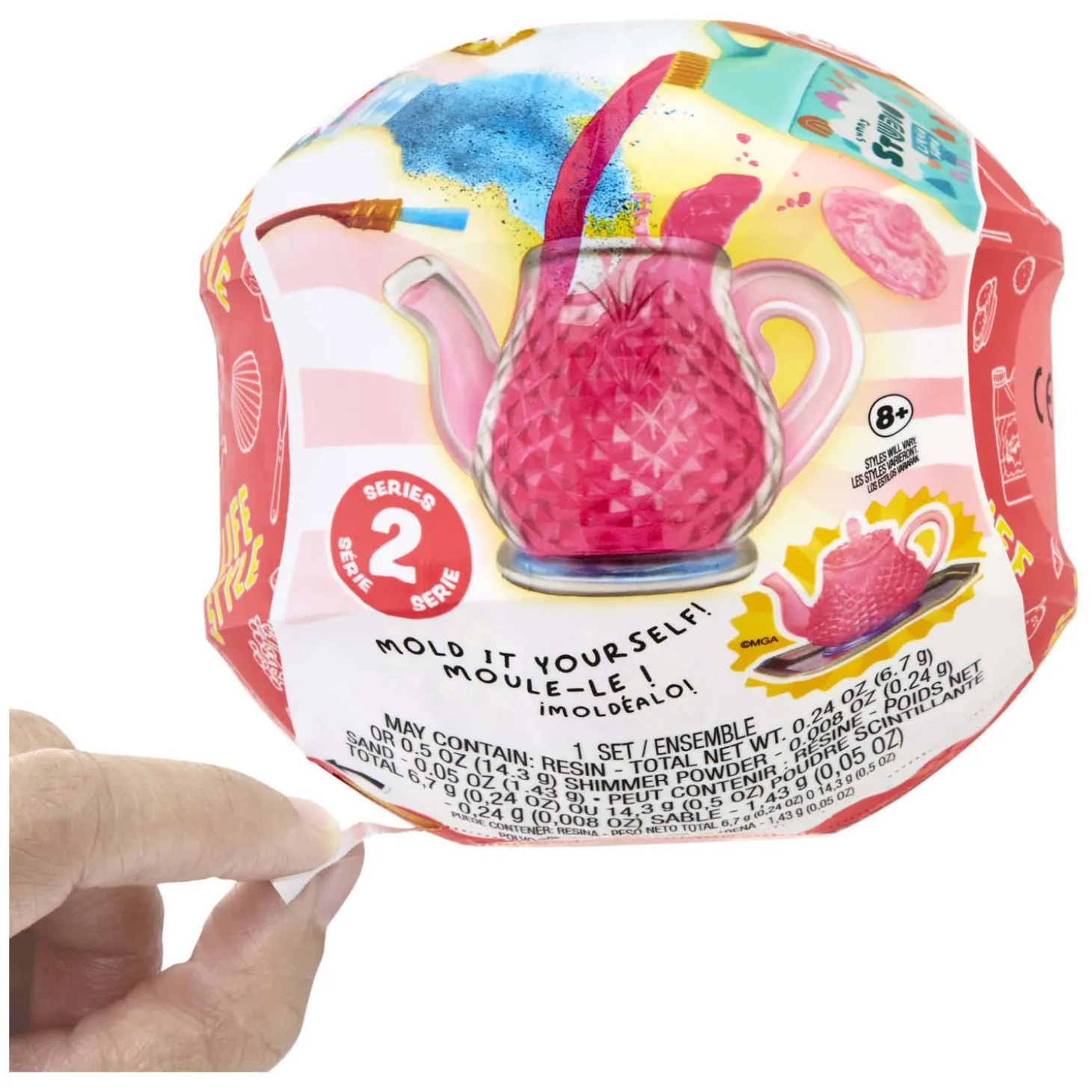 Elke bol bevat realistische mini-items om je eigen miniaturen te modelleren van je favoriete lifestyle- en decoratievoorwerpen! Van kaarsen tot theekopjes en theepotten, elke verpakking is een VERRASSING, dus je weet pas na het uitpakken welke mini erin zit! Vergelijk de inhoud van je verpakking met de inbegrepen verzamelgids, zodat je ziet welke mini je hebt gekregen. Gebruik de geleverde items en vormen en volg de instructies op de achterkant om je mini te maken. Zodra je je minicreatie hebt gemodelleerd, zet je je miniatuur in uv-licht (zoals de zon) tot de hars is uitgehard. Nu heb je een verzamelvoorwerp dat je aan iedereen kunt laten zien!