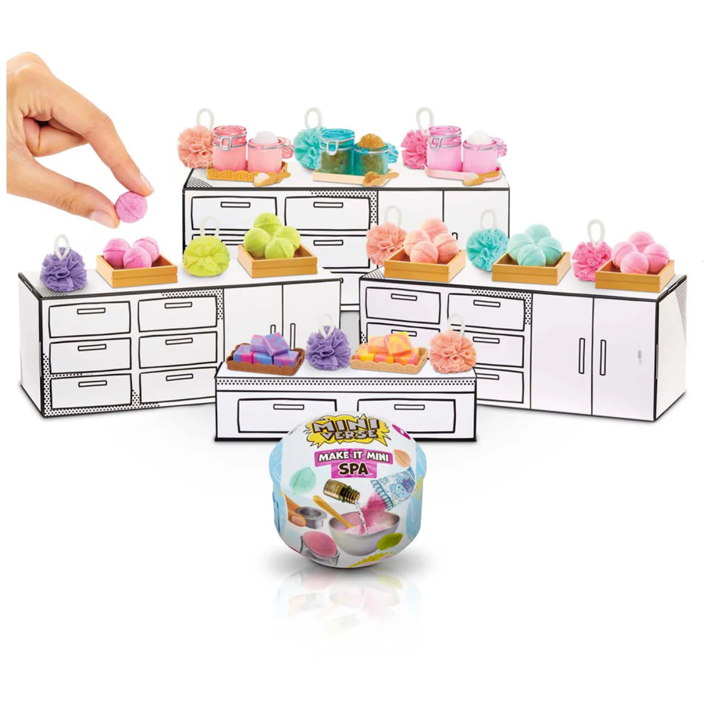 – UITPAKKEN: elke bol bevat realistische mini-‘ingrediënten’ en -accessoires om je eigen mini-versies te maken van je favoriete items met spa-thema. Elke verpakking is een VERRASSING, dus je weet pas na het uitpakken welke mini erin zit!