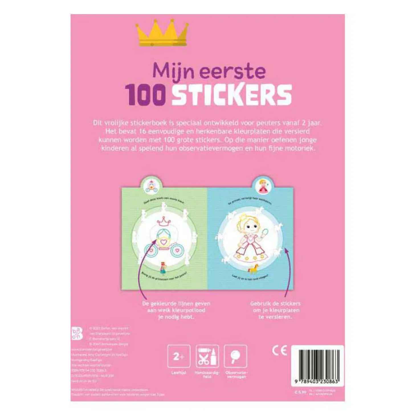 Dit vrolijke stickerboek vol prinsessen is speciaal ontwikkeld voor peuters vanaf 2 jaar. Het bevat 16 eenvoudige en herkenbare kleurplaten die versierd kunnen worden met 100 grote stickers. De gekleurde lijnen geven aan welk kleurpotlood je nodig hebt. Op die manier oefenen jonge kinderen al spelend hun observatievermogen en hun fijne motoriek.