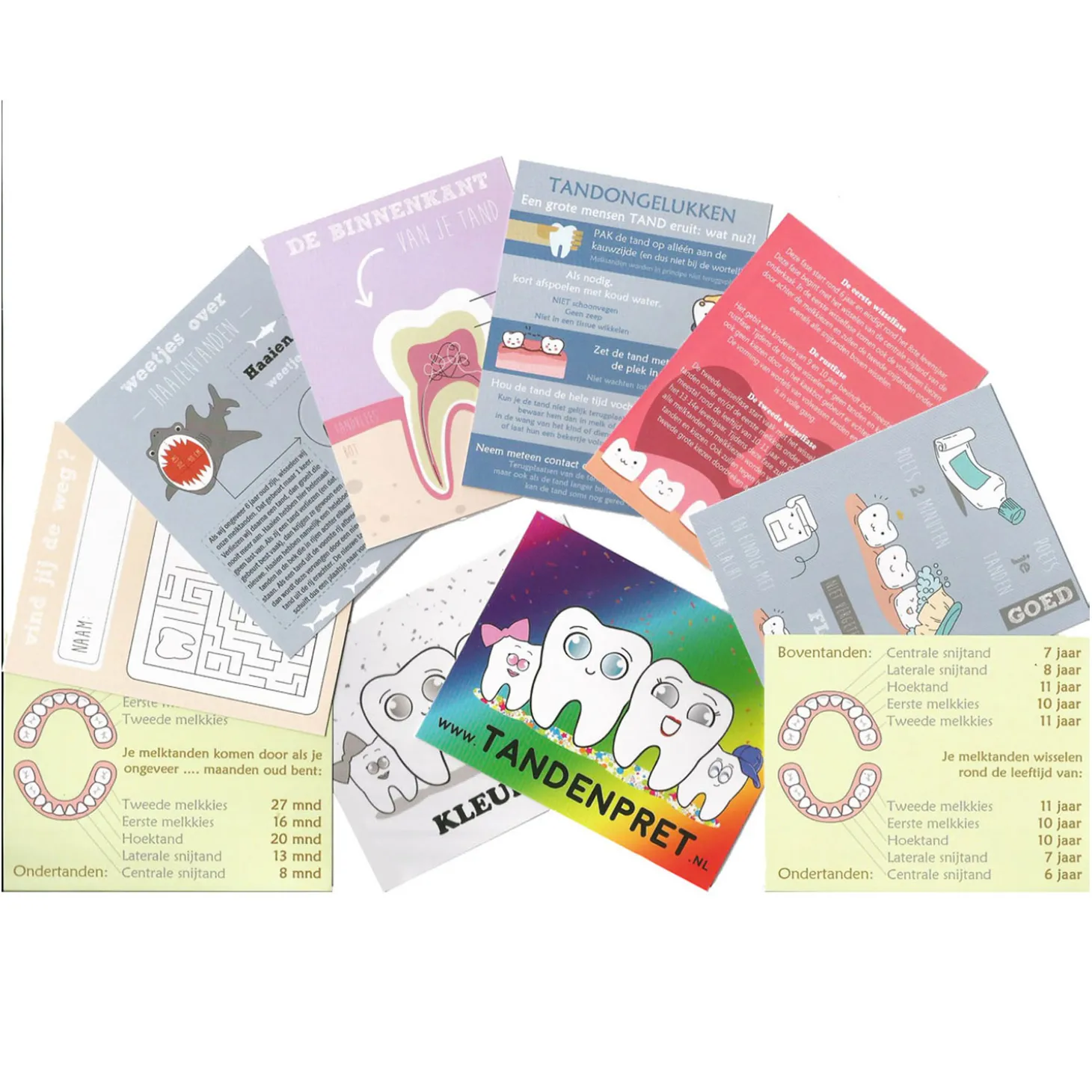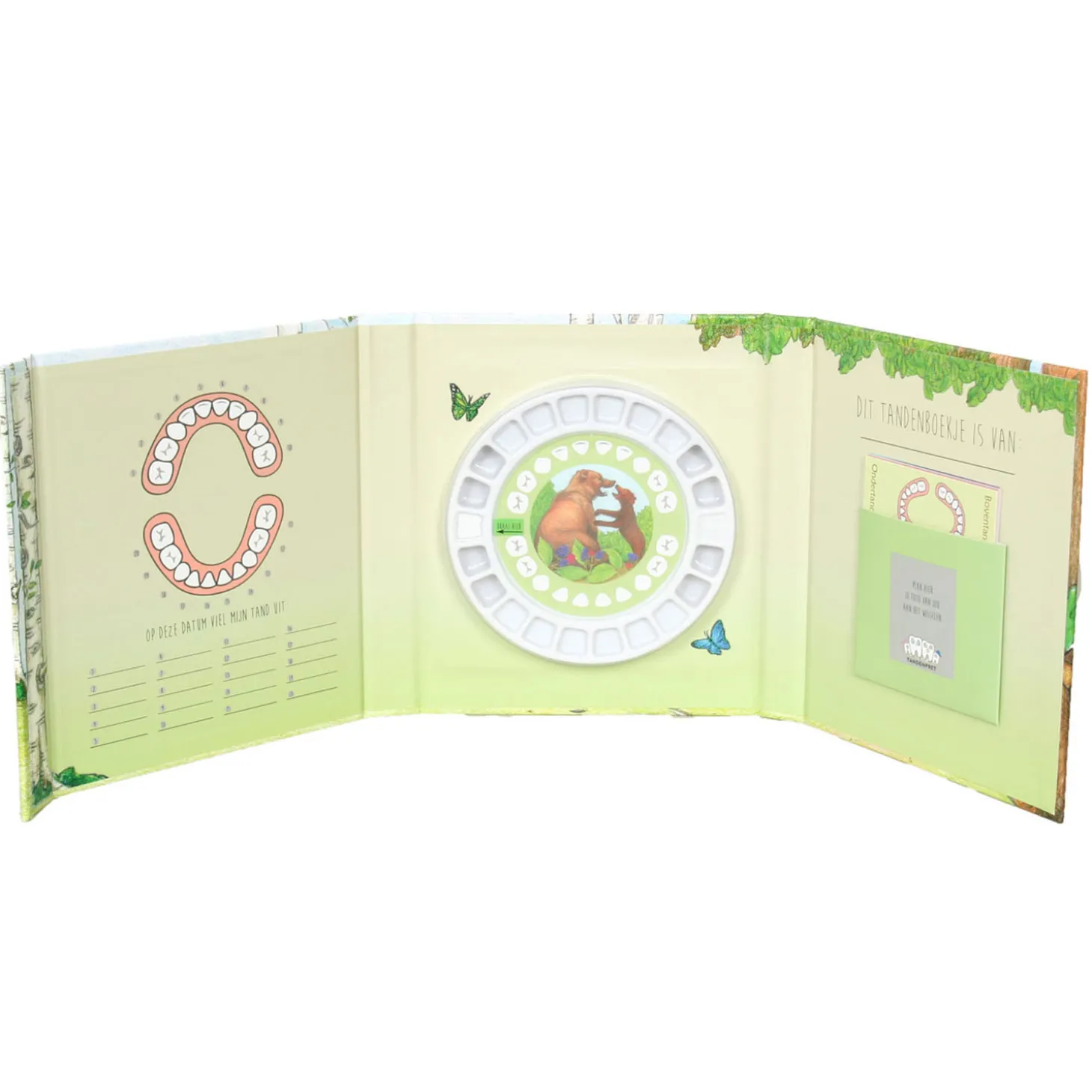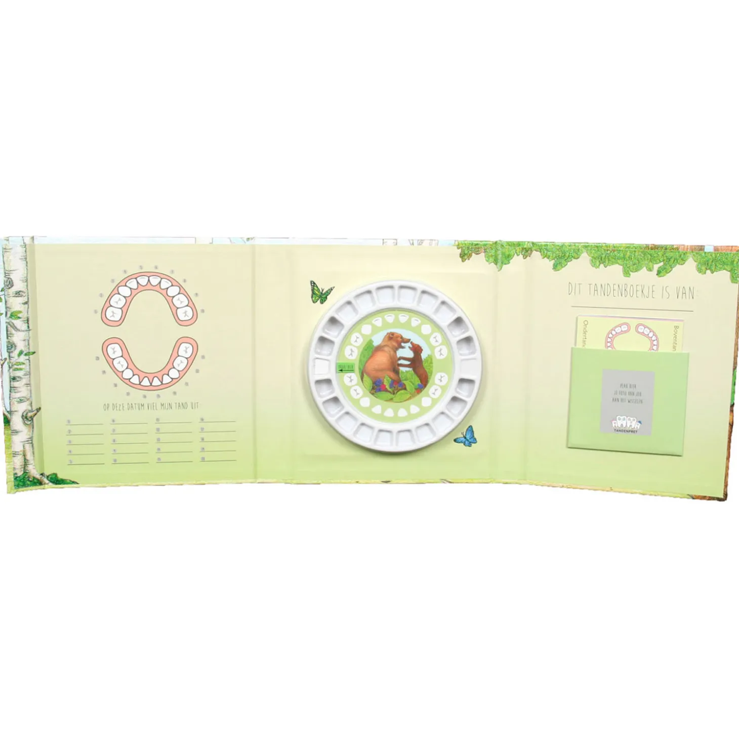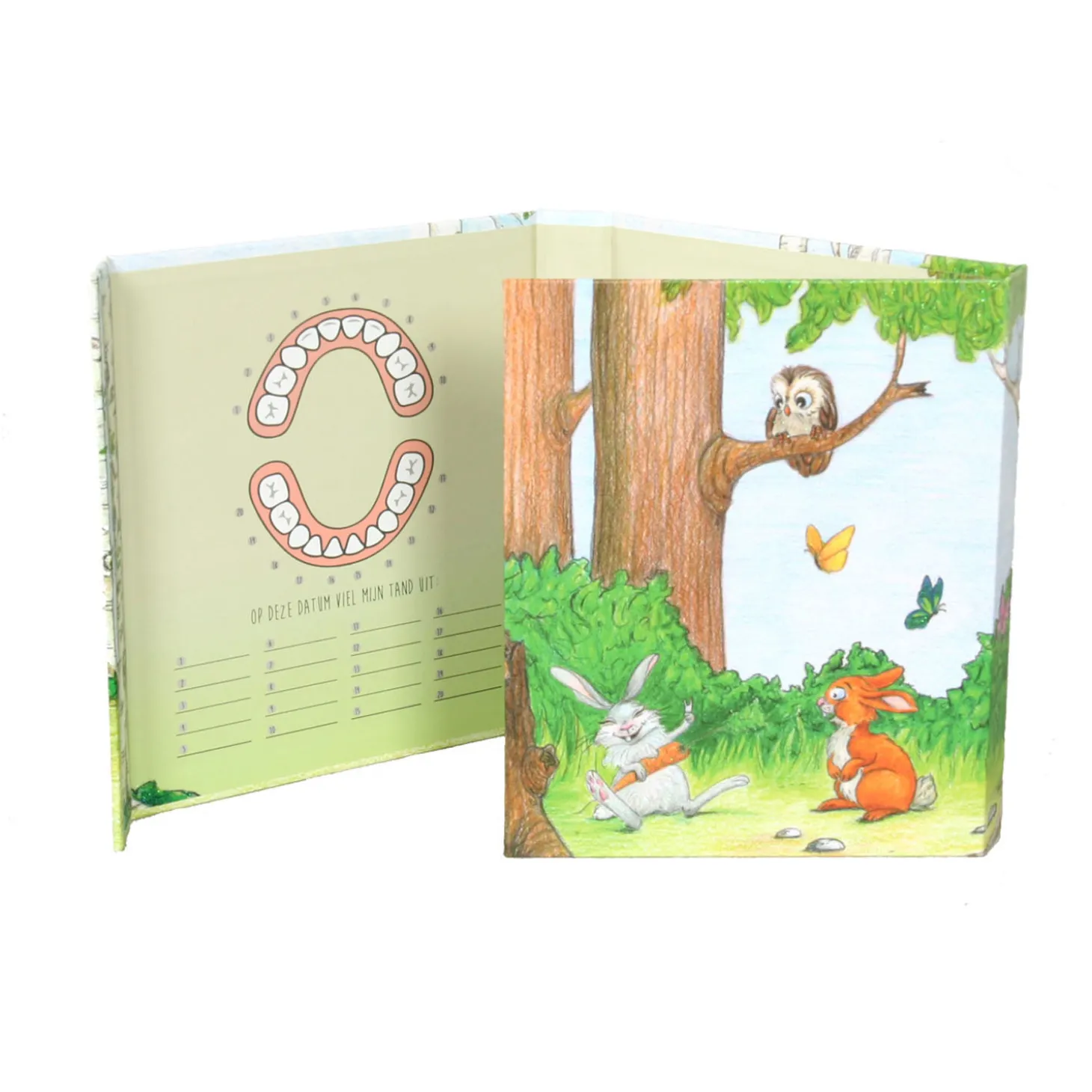 Bewaar je melktanden in dit mooie boekje en raak ze nooit meer kwijt! Je kind kan zijn of haar tandjes toevertrouwen aan de bosvriendjes in dit tandenboekje. In het boekje staan prachtige handgeschetste illustraties van Carolien Kooijman. Het tandenboekje bestaat uit een handige houder met draaivakjes waar elke tand zijn eigen plaats heeft. Er is plaats voor een foto en bij elke tand kun je bijhouden wanneer deze gewisseld is. Het boekje bevat ook vijf kaartjes met educatieve weetjes over de tanden vergezeld van leuke tekeningen of bieden ruimte voor eigen (aan)tekeningen van uw kind. Het boekje heeft een magnetische sluiting om het boekje te sluiten. Een prachtig cadeau voor een pasgeboren baby of een wisselend kind!