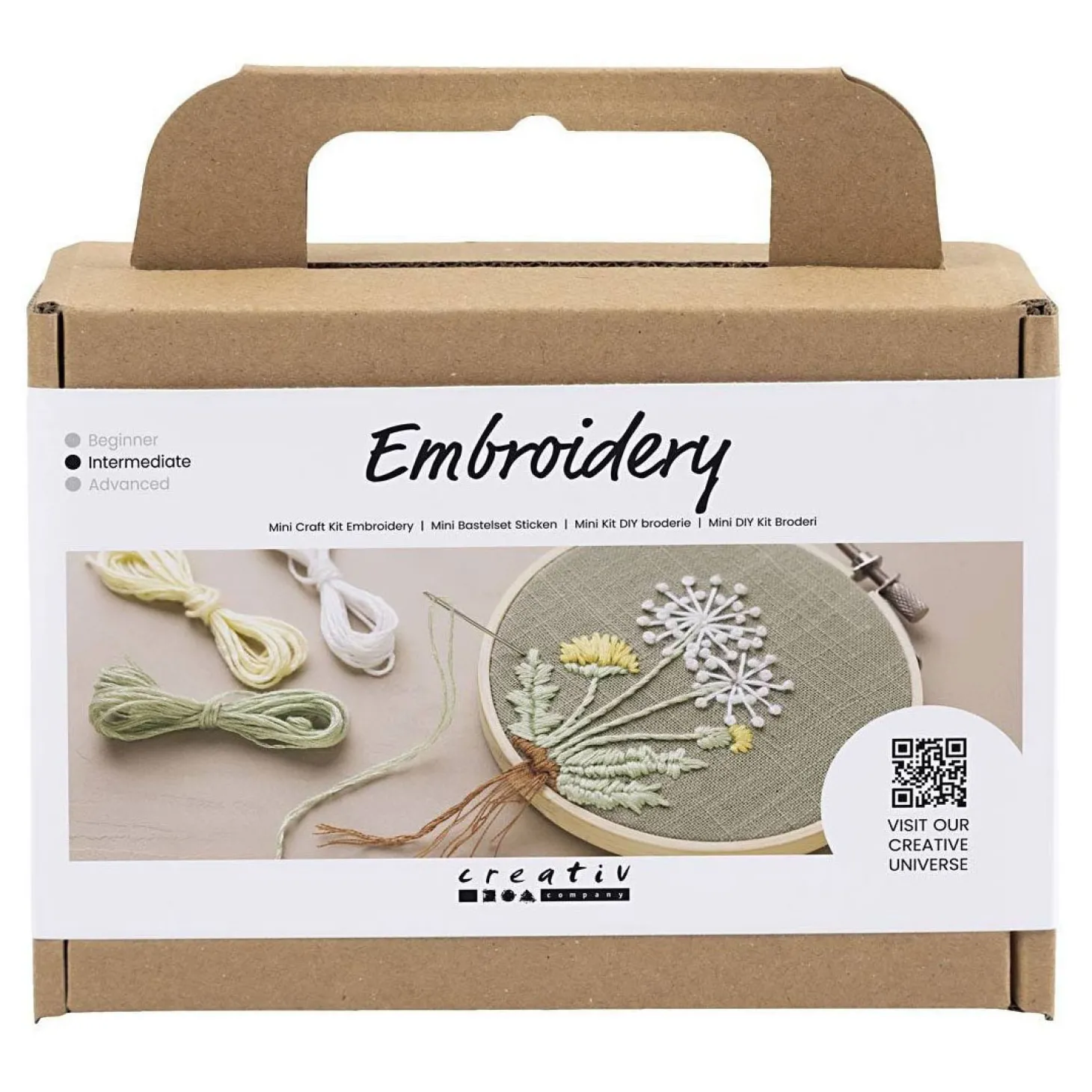 Inhoud: Borduurframe, stof, borduurgaren, naald, naalddoorsteker.