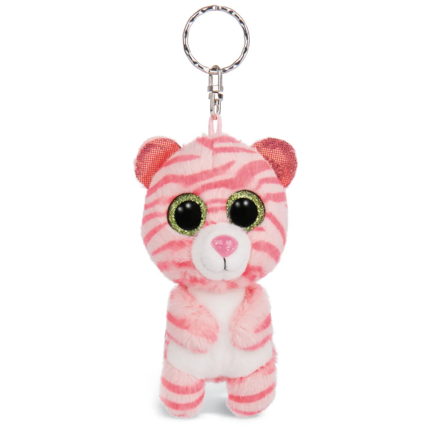 Met de felle strepen is Tiger Fula perfect gecamoufleerd. Als sleutelhanger van Glubschis zal de schattige tijger fans van alle leeftijden fascineren. Met de hoogwaardige metalen sleutelhanger aan de kop van de kleine tijger kun je hem veilig aan je sleutelbos, rugzak, schooltas of handtas bevestigen. Glubschis Tiger Fula komt in roze tinten. De schattige tijgeroortjes zijn bedekt met een rosékleurige glitterstof en schitteren met de groen omrande glitteroogjes. De pluchen sleutelhanger van Glubschis is een perfect cadeau.