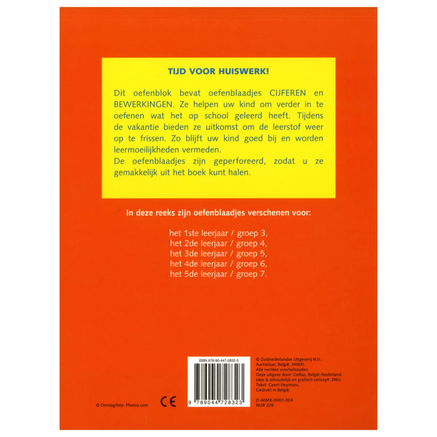 Dit oefenblok bevat oefenblaadjescijferen en bewerkingen. Ze helpen uw kind om verder in te oefenen wat het op school geleerd heeft. Tijdens de vakantie bieden ze uitkomst om de leerstof weer op te frissen. Zo blijft uw kind goed bij en worden leermoeilijkheden vermeden. De oefenblaadjes zijn geperforeerd, zodat u ze gemakkelijk uit het boek kunt halen.
