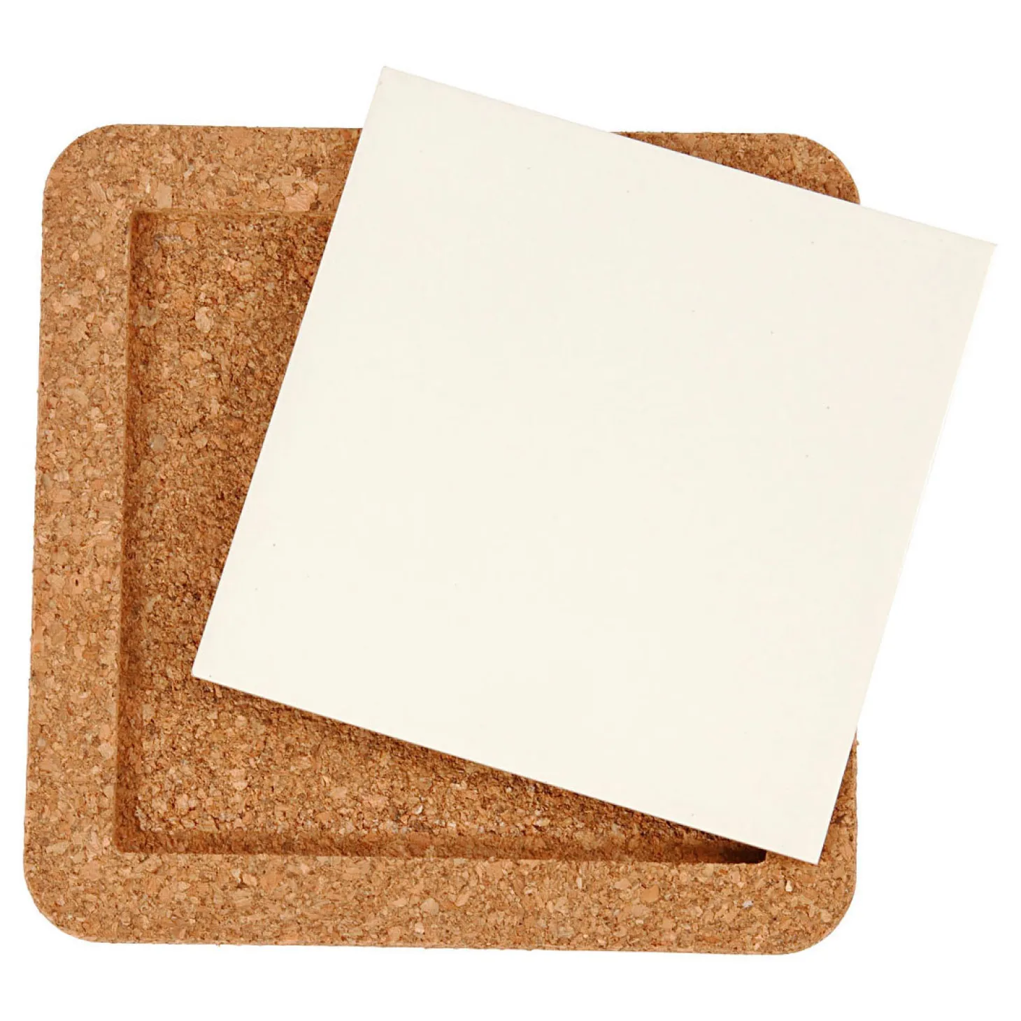 Onderzetter van wit porselein met kurken lijst