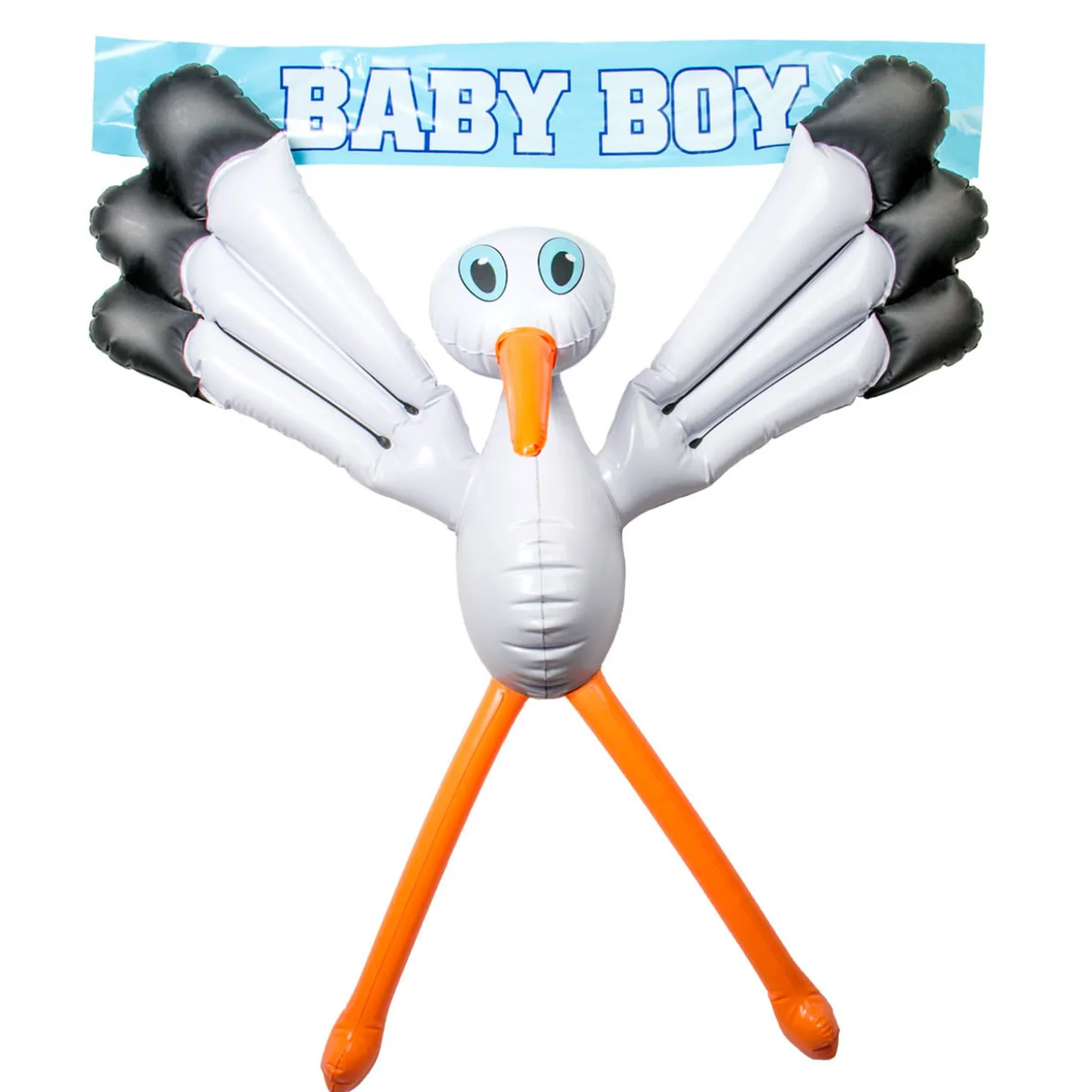 Bij deze ooievaar zitten twee raamdecoraties speciaal voor een jongen of een meisje.