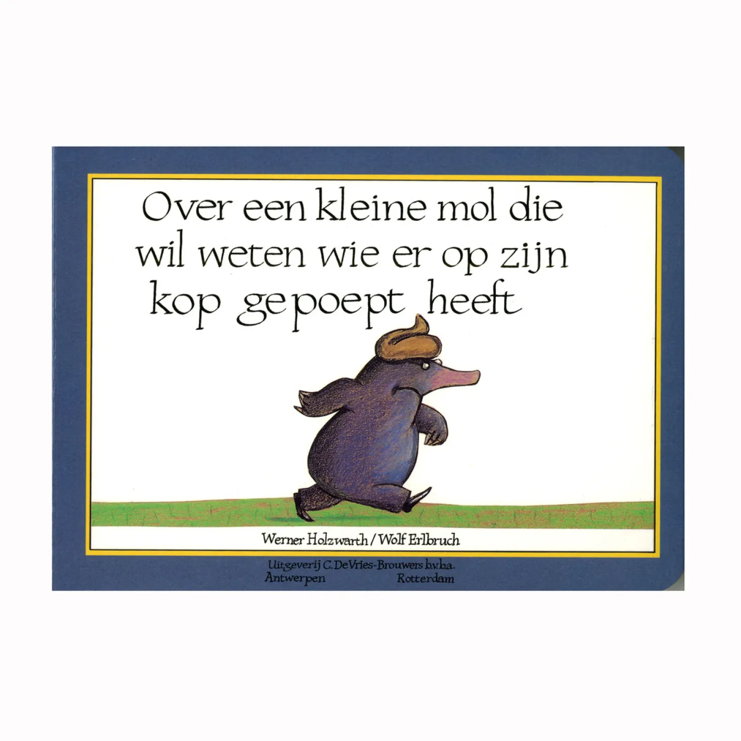 Over een kleine mol die wil weten wie er op zijn kop gepoept heeft. Als de kleine mol op een dag zijn kop boven de grond steekt, gebeurt het: het is rond en bruin en ziet er een beetje uit als een worst en het komt precies op zijn kop terecht. Mol gaat op zoek naar de dader. Kartonboek. Voorlezen tot 6 jaar. Inhoud: 23 pagina’s.