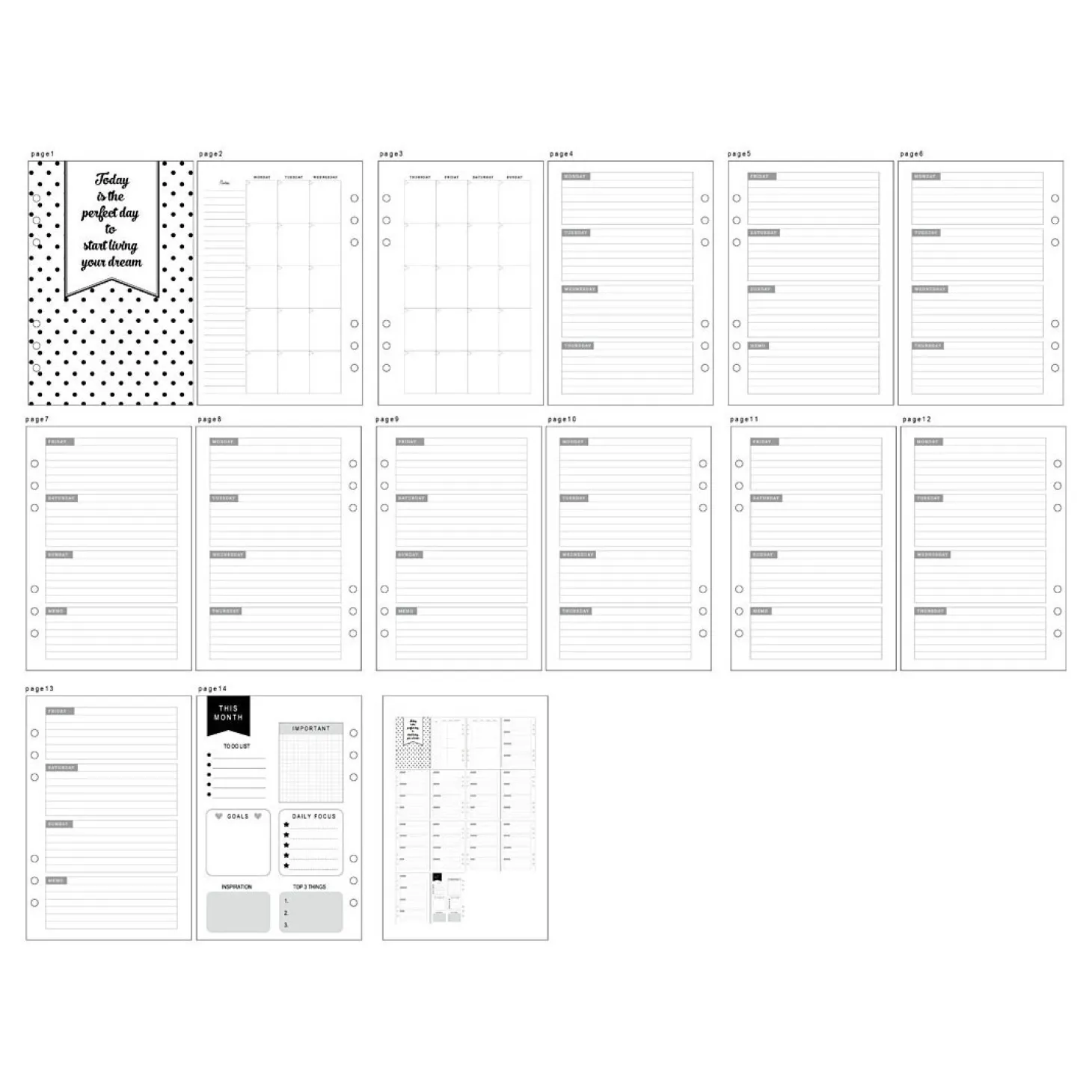 Losse planner pagina’s met 6 gaten. Perfect voor het maken van een bulletjournal, een creative journal of een reisverslag. De pagina’s zijn geschikt voor planners met artikelnr. 192648-192651